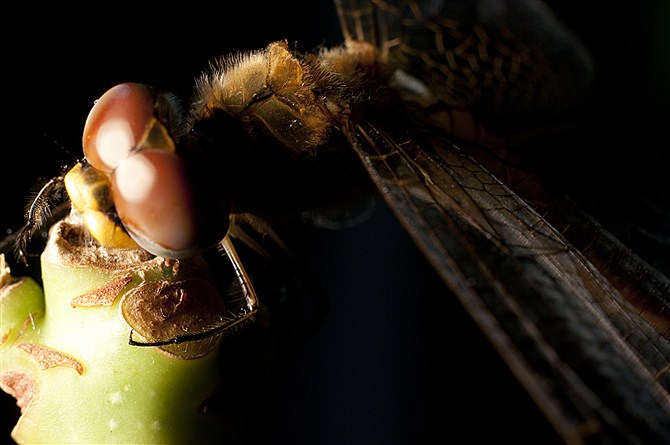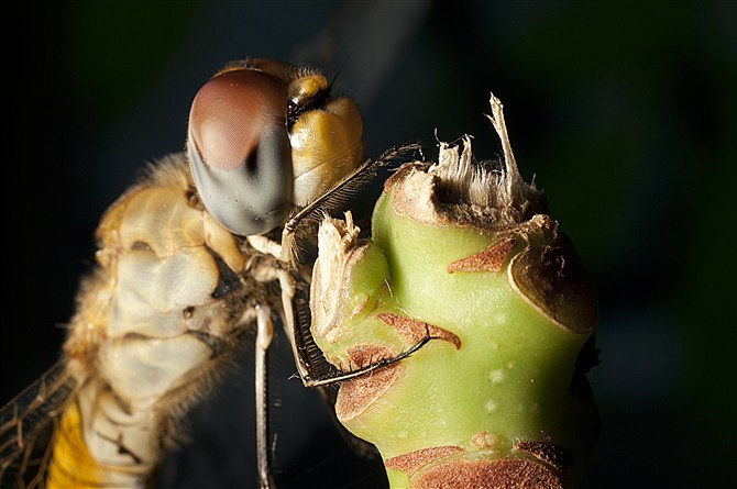 被discovery2012的昆虫作品所感动,今日下班前系公园捉的两只蜻蜓,回家后放开距地,一只乱飞,停左去吊灯上面,这一只就乖乖甘比我摆去发财树上做我模特,正!