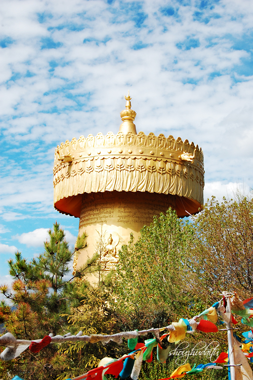 香格里拉-最大的转经筒!藏族单数为吉祥数字。我转了三圈。进寺庙记得女客先迈右脚,男客先迈左脚,都要注意,一定不能踩在门槛上!