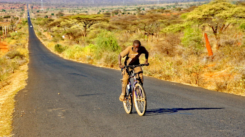 埃塞俄比亚南部之路。就在我骑行在上坡路上,慢悠悠的晃荡的时候,忽地,一个孩子骑车过去了,忽地,又一个过去了,我顿时来了兴趣,三个人在坡上飙起了车,最终我获胜。不过看他们蹬车的架势,也着实辛苦。他们赶上了我,走到我跟前,向我要了水,之后继续骑车攀登。