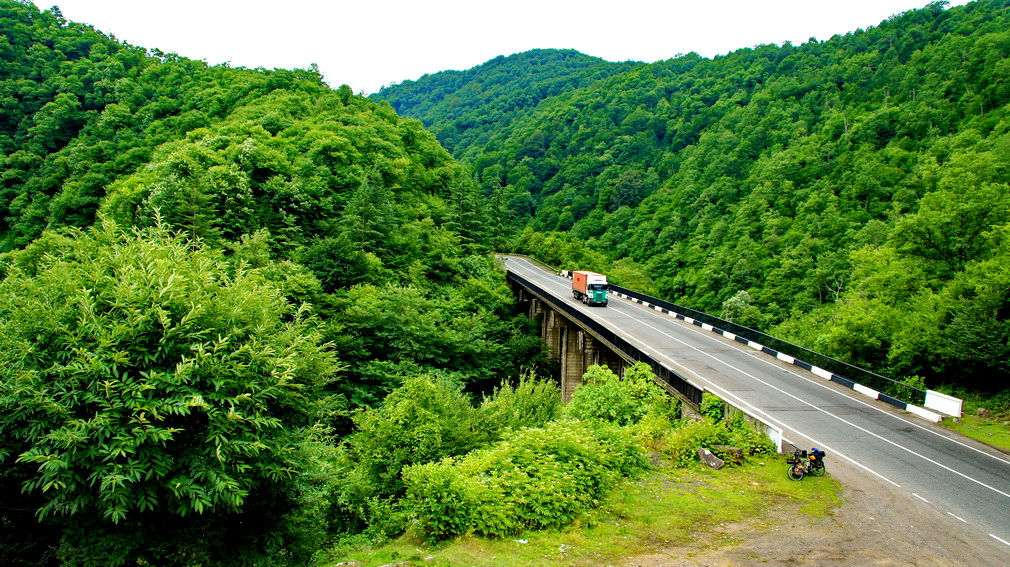 高加索的山,总给我特别的印象。一是坡陡,经常会有12%的大坡;二是路险,经常还会有起伏的急坡; 三是变化多,一会还在高山顶上,一会却又随河流进了峡谷,一会进了山洞,一会却又上了山腰。