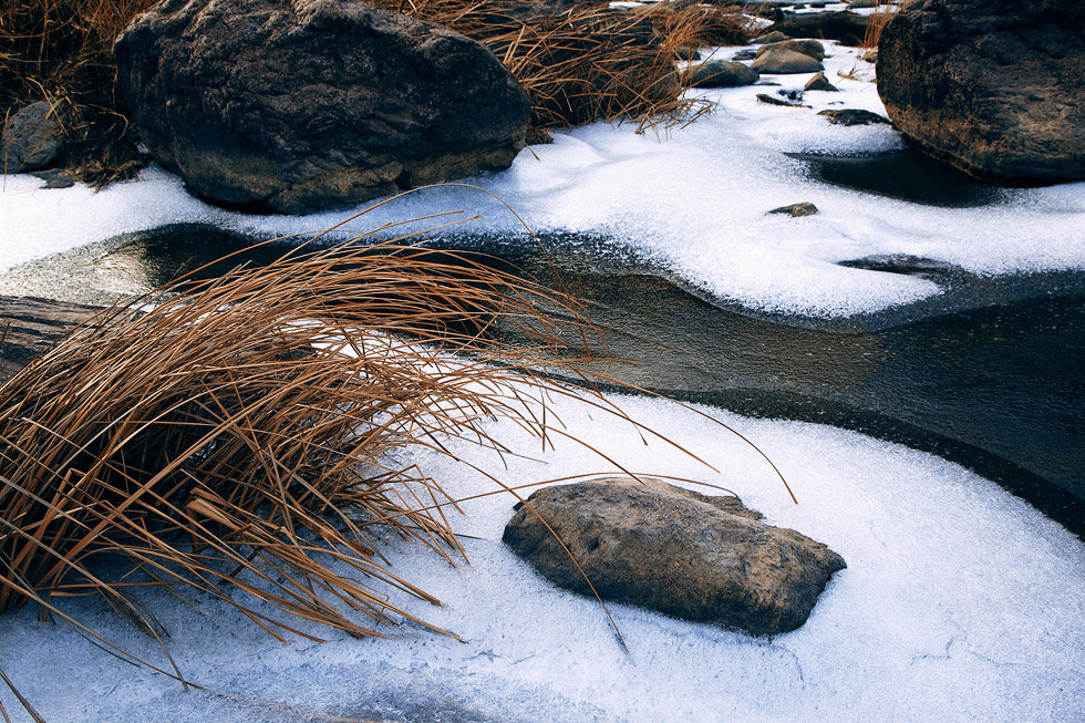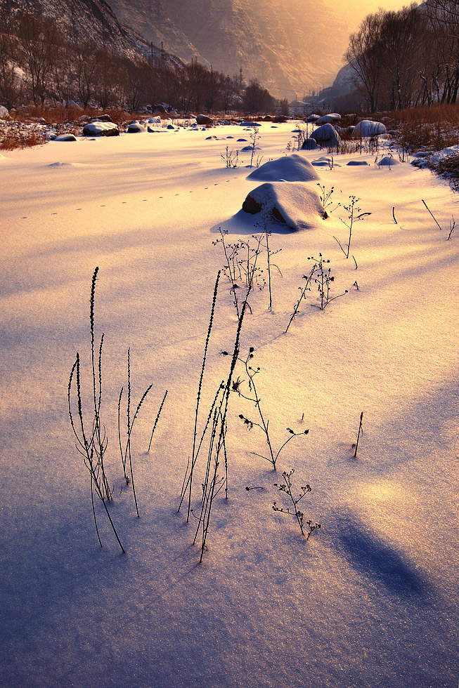 冬天在极少有人的野外拍照,是一种说不上美好,却总想再次体会的感受。站在相机后面,耳边是风掠过干枯树梢时的呼啸,脚下是水在冰层间流动的声音,眼前是看似无比温暖的夕阳,周围是在不断吞噬着体温的寒冷……