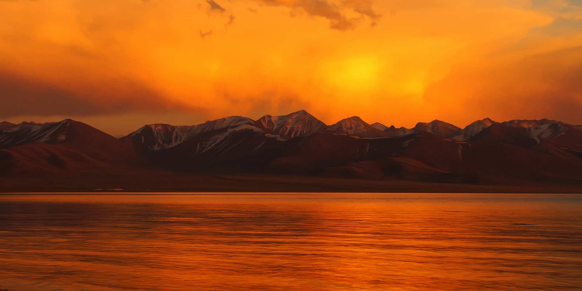 西藏纳木错,2012年拍,加油画效果。