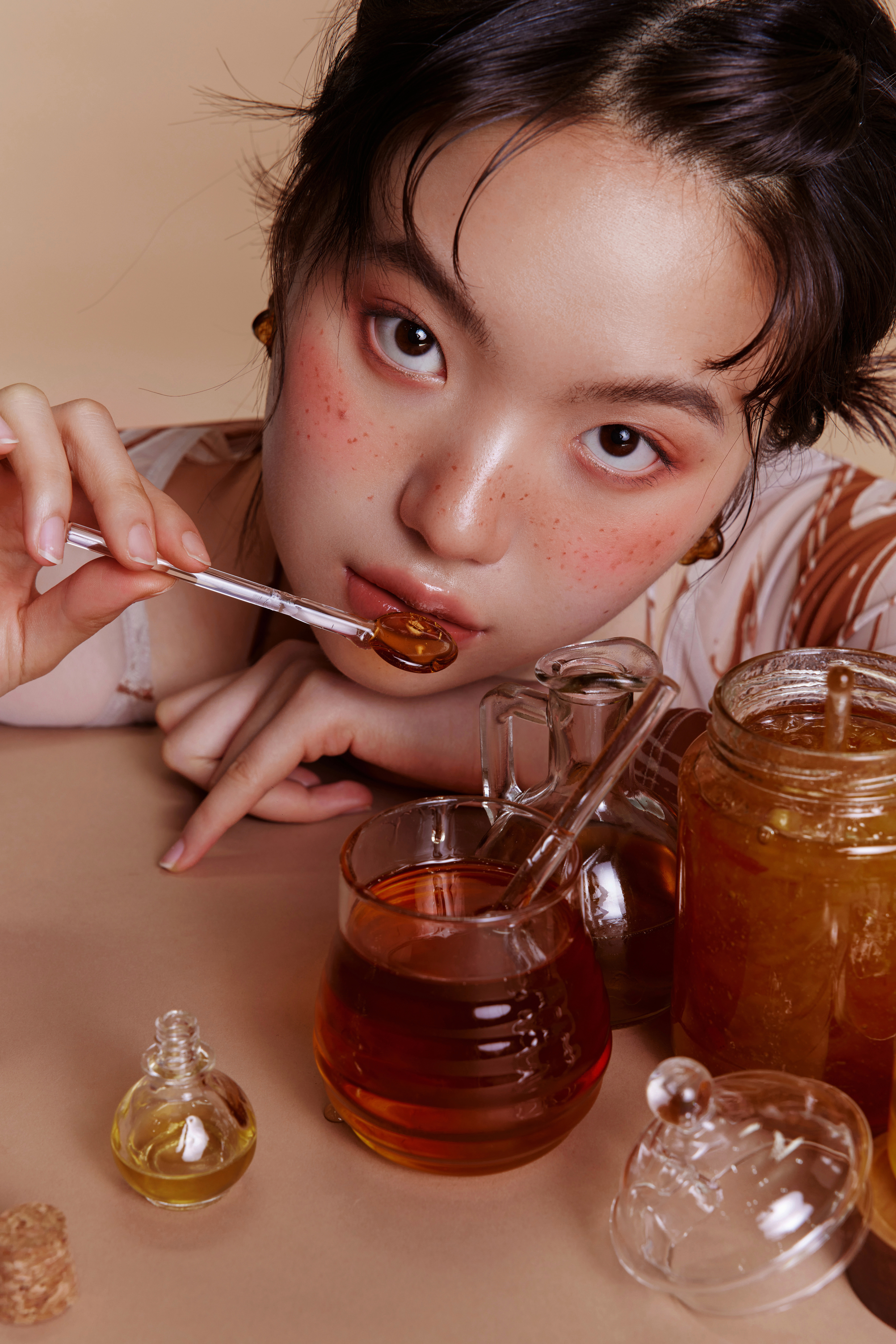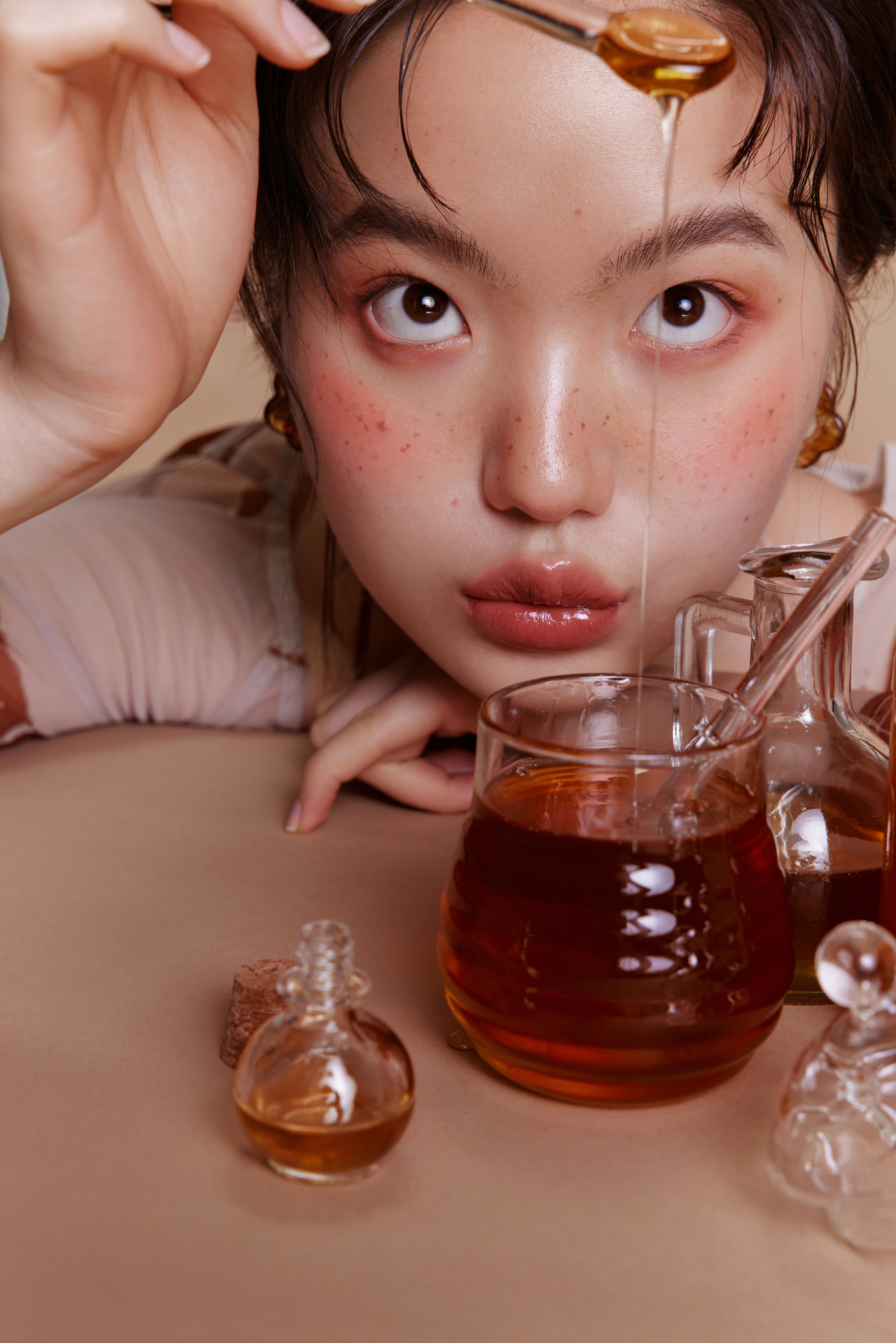 不同的色号搭配了不同的妆造和光影,如何显得主题突出晶莹剔透,而不是粘腻,是下了一番功夫哒~
