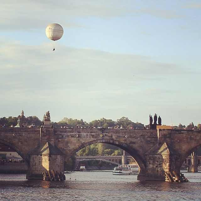 游船上遥望查理大桥。若不是桥下的船只,还真有种非现实的错觉。
