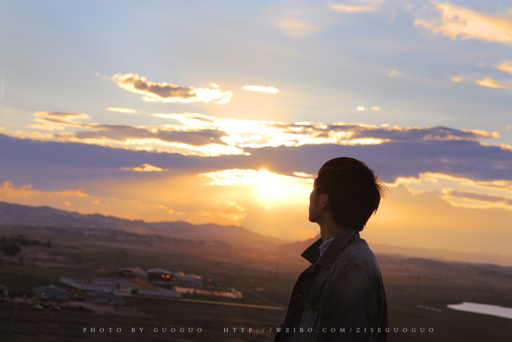 夕阳之时爬上附近的小山顶看夕阳,气温很低风很大。
