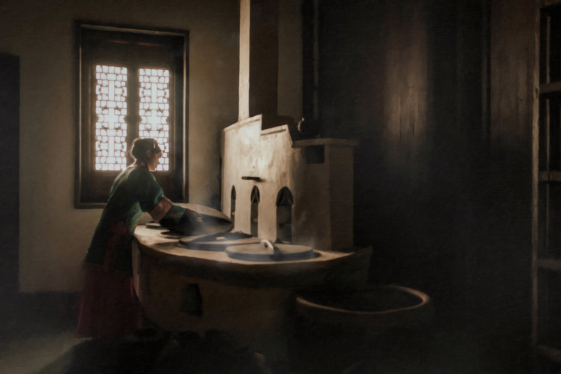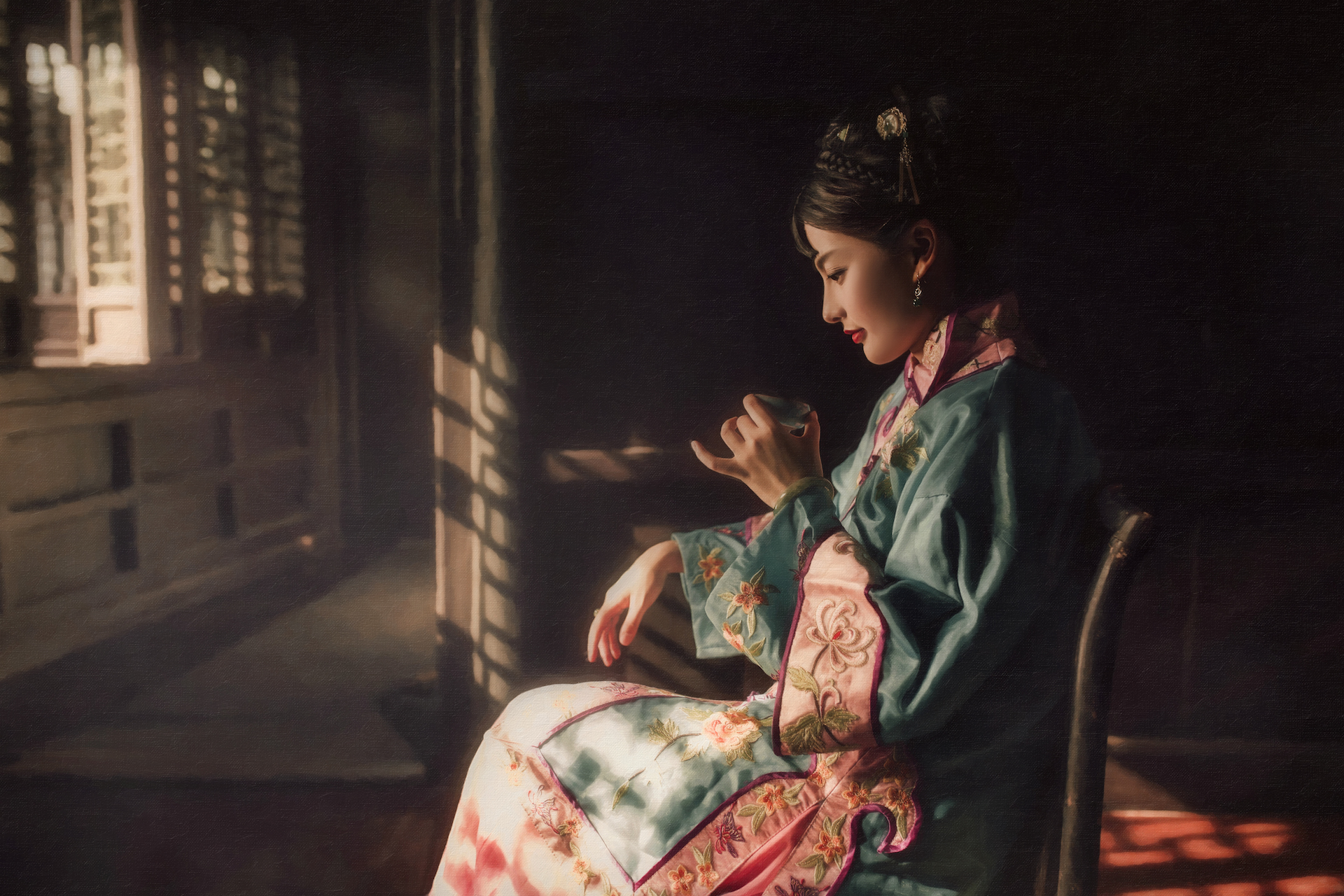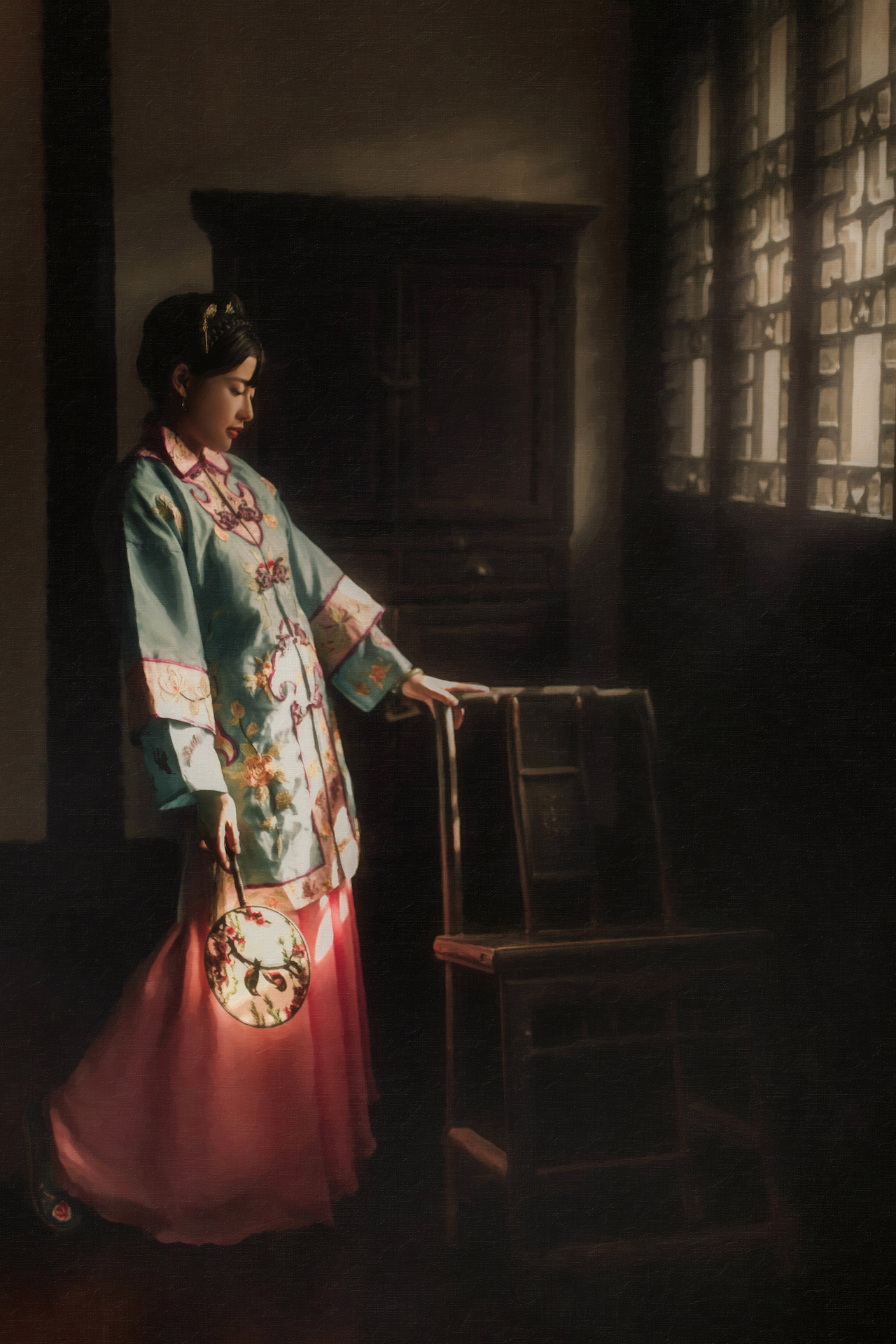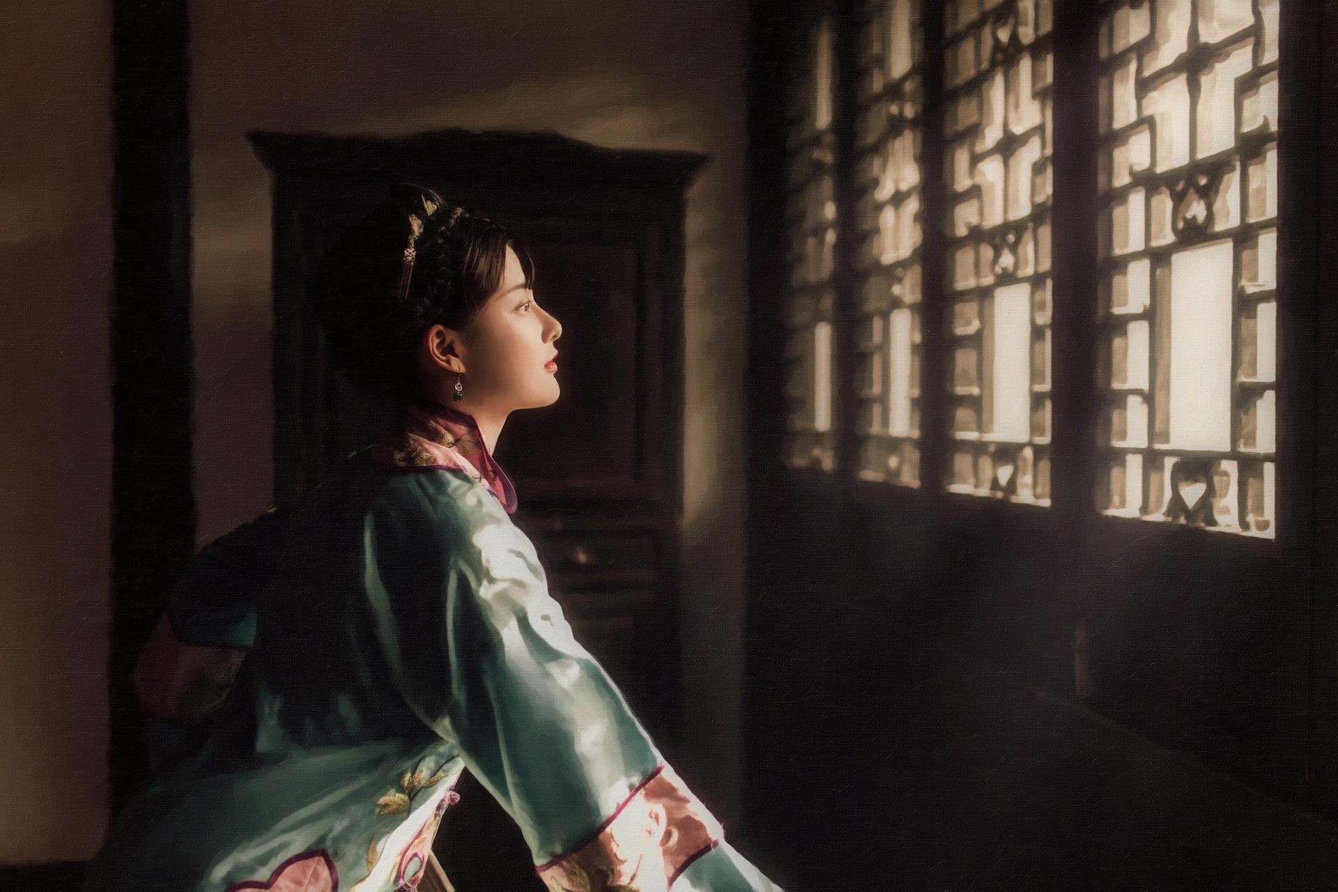 依稀人面入回廊,清诗对几行,