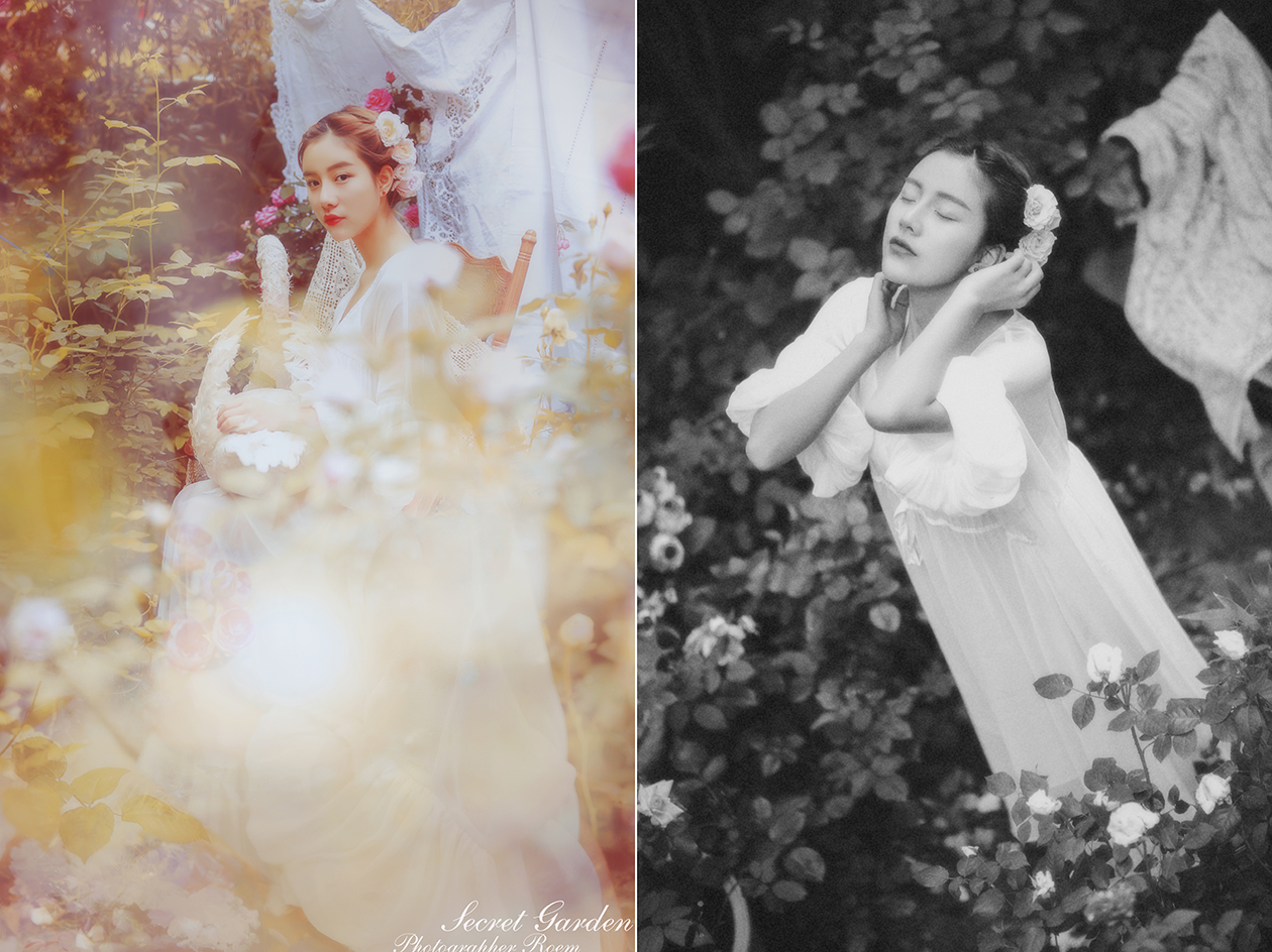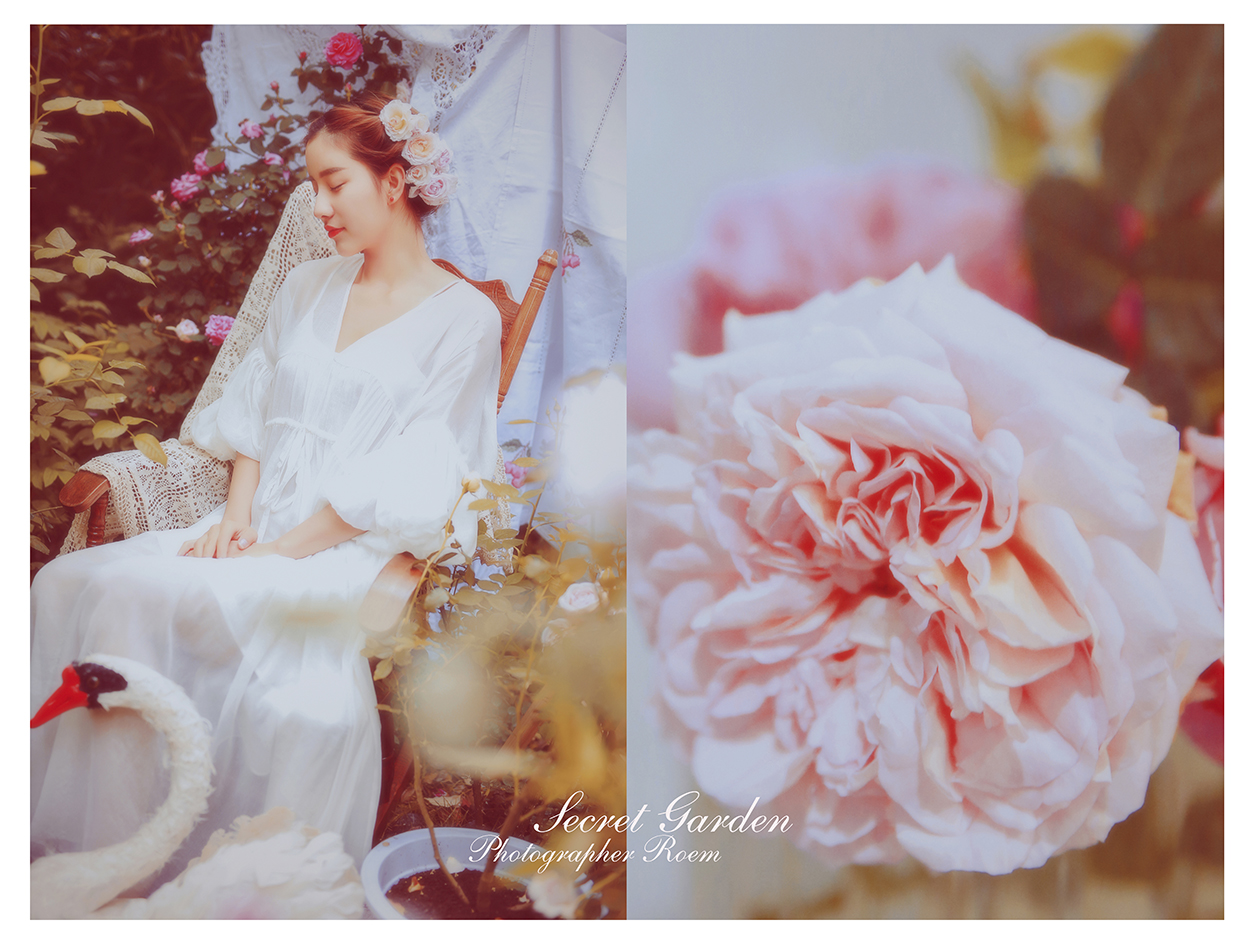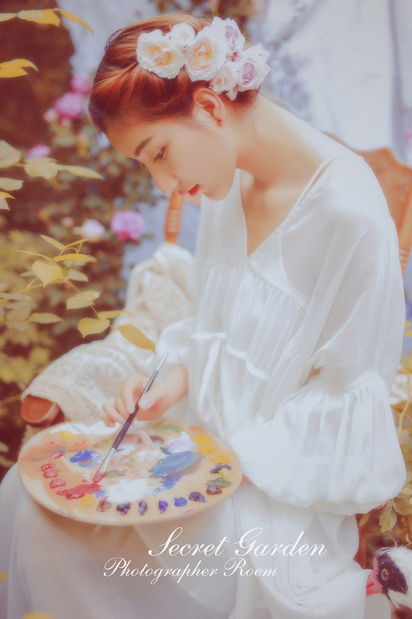 雨后,泥土混合着花瓣的颜色 风里有花香 身边一切被美好的画面定格 好像一副永恒的画卷 摄影、后期:@肉肉ROEM 出镜:@AG-夏葵 服装、场地:@简爱设计坊