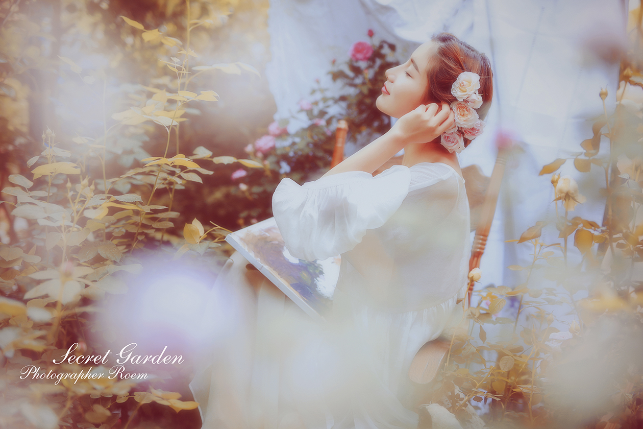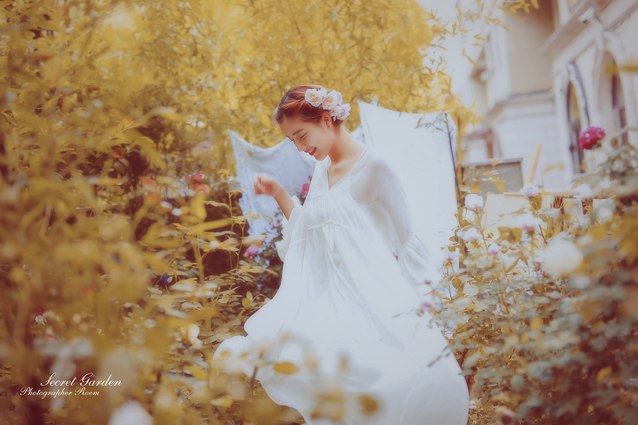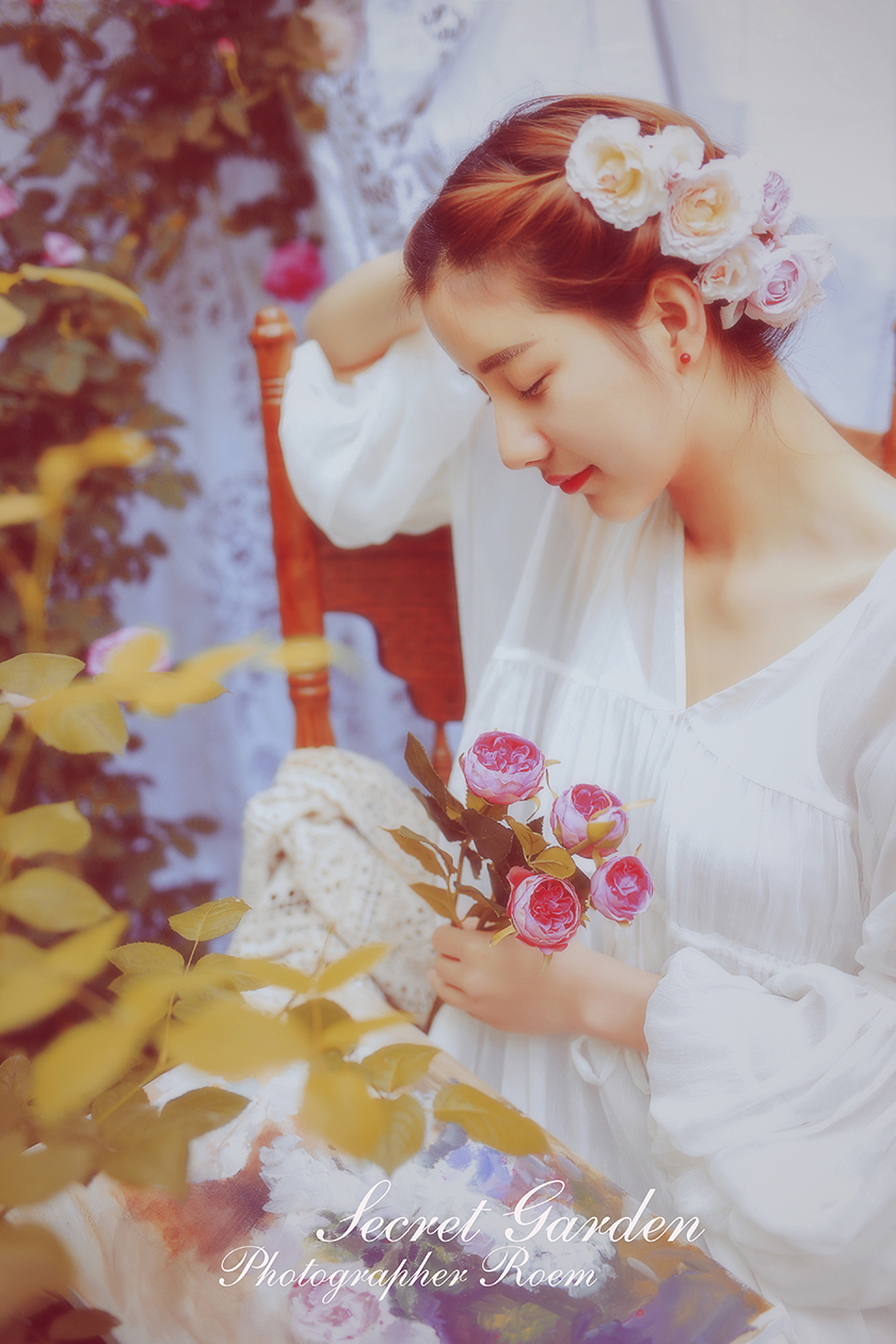 雨后,泥土混合着花瓣的颜色 风里有花香 身边一切被美好的画面定格 好像一副永恒的画卷 摄影、后期:@肉肉ROEM 出镜:@AG-夏葵 服装、场地:@简爱设计坊