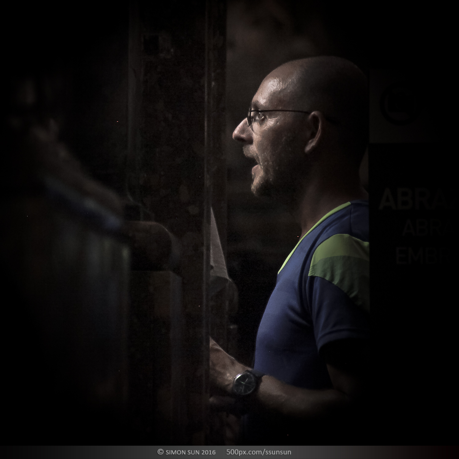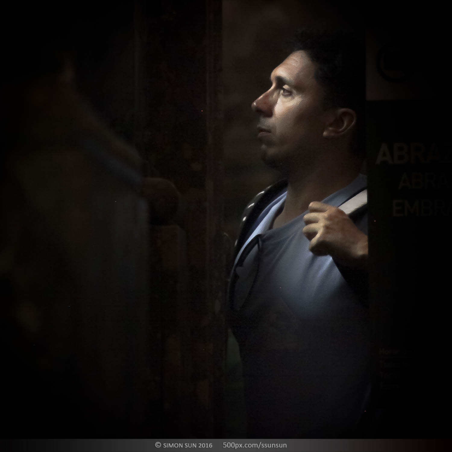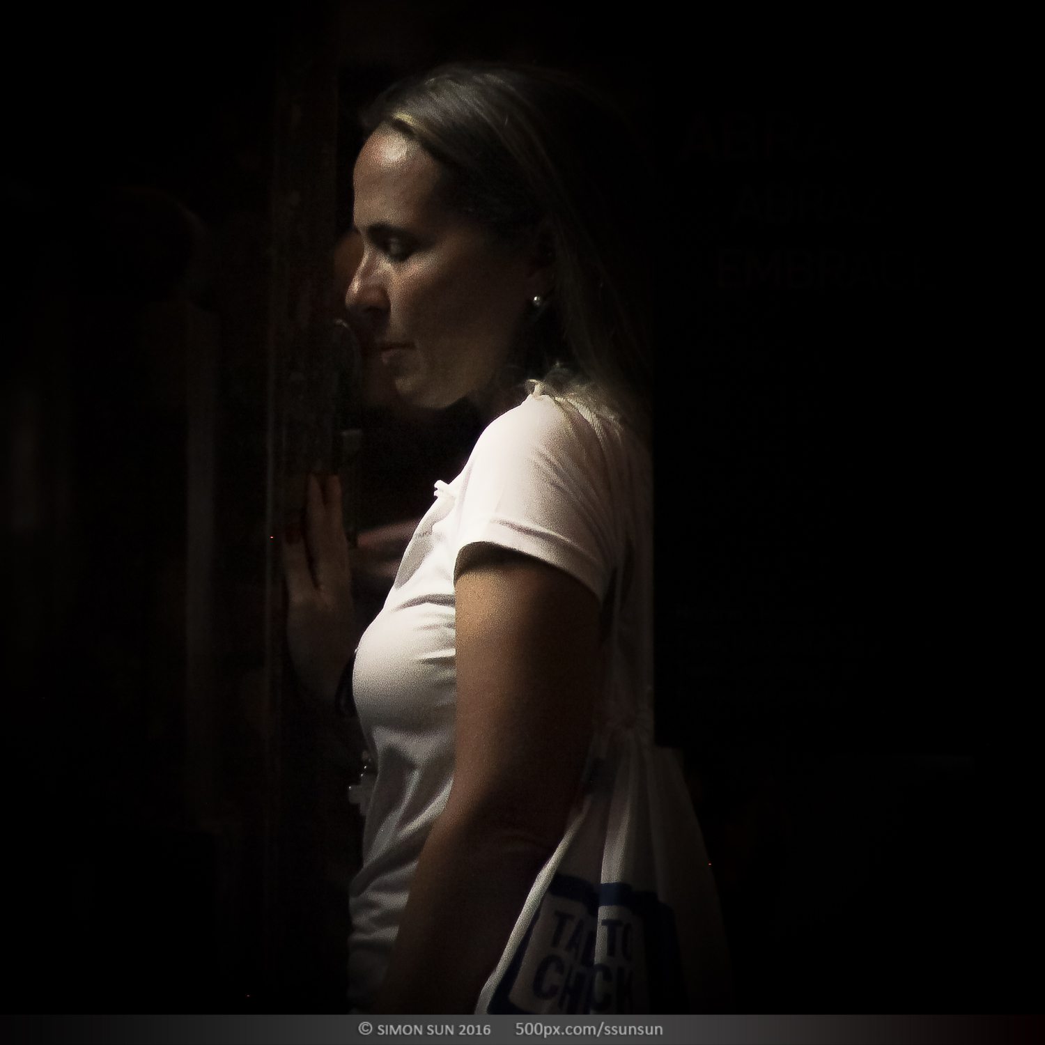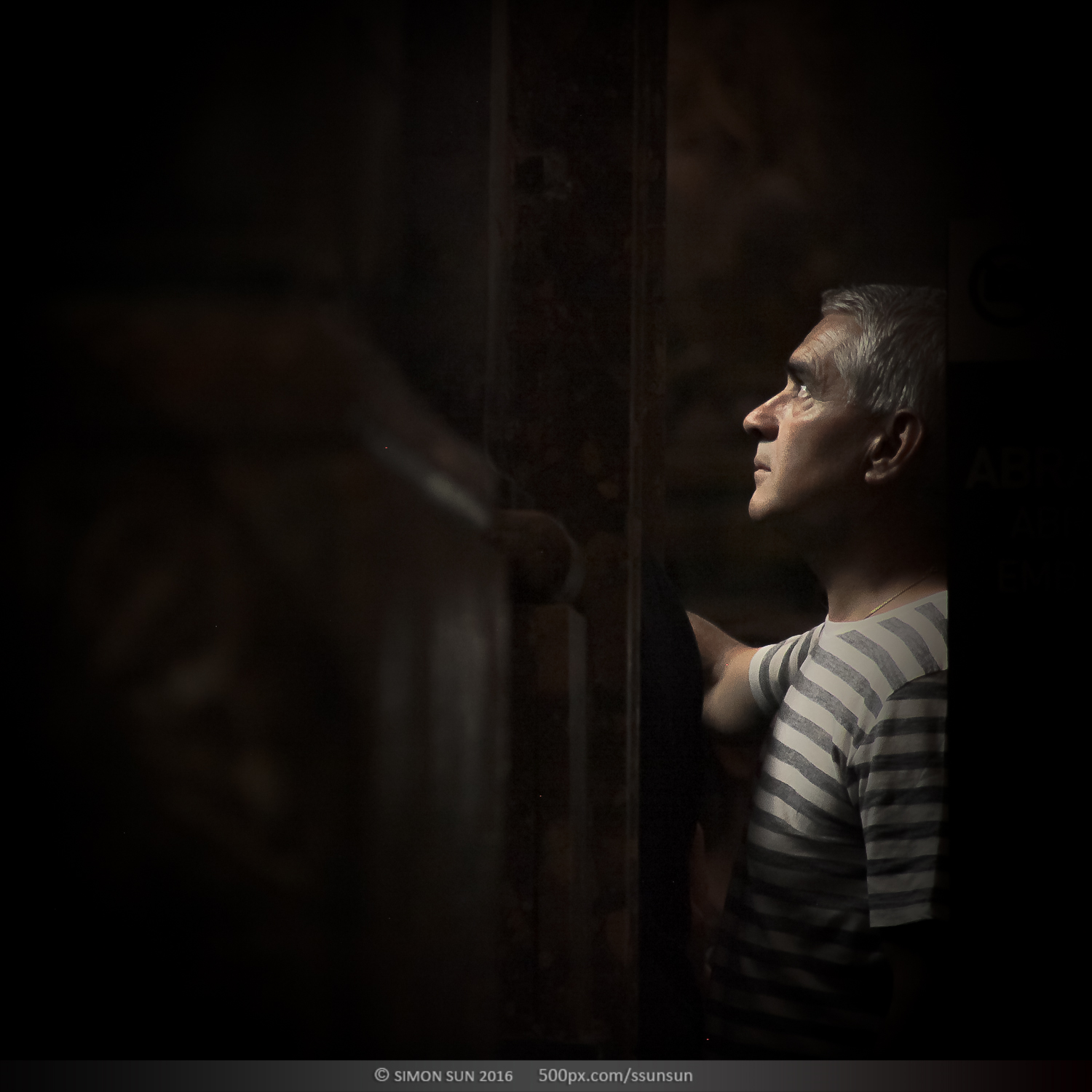 上帝说要有光。圣地亚哥主教大教堂,著名的朝圣之路的终点。这座11世纪建造的教堂祭祀着基督的12门徒之一雅各(圣詹姆斯)。12世纪左右他被推崇为基教西班牙的守护圣人。在地下祭坛中安置着他的遗体,教堂中雅各的雕像终日被朝圣的人群亲吻抚摸,来自世界的不同地方的朝圣者沿着朝圣之路历尽辛苦,最终来到这里,每个人的心情都不同。我躲在一个完全不打搅信徒的位置,记录了他们进入圣殿瞬间的表情。拍摄了昏暗中的100个人。在这里有震惊,有悲伤,有忧郁,有犹豫,有喜悦,有无奈。每个人心中都有自己的圣人,在这一刻,他们其实看见的是自己。