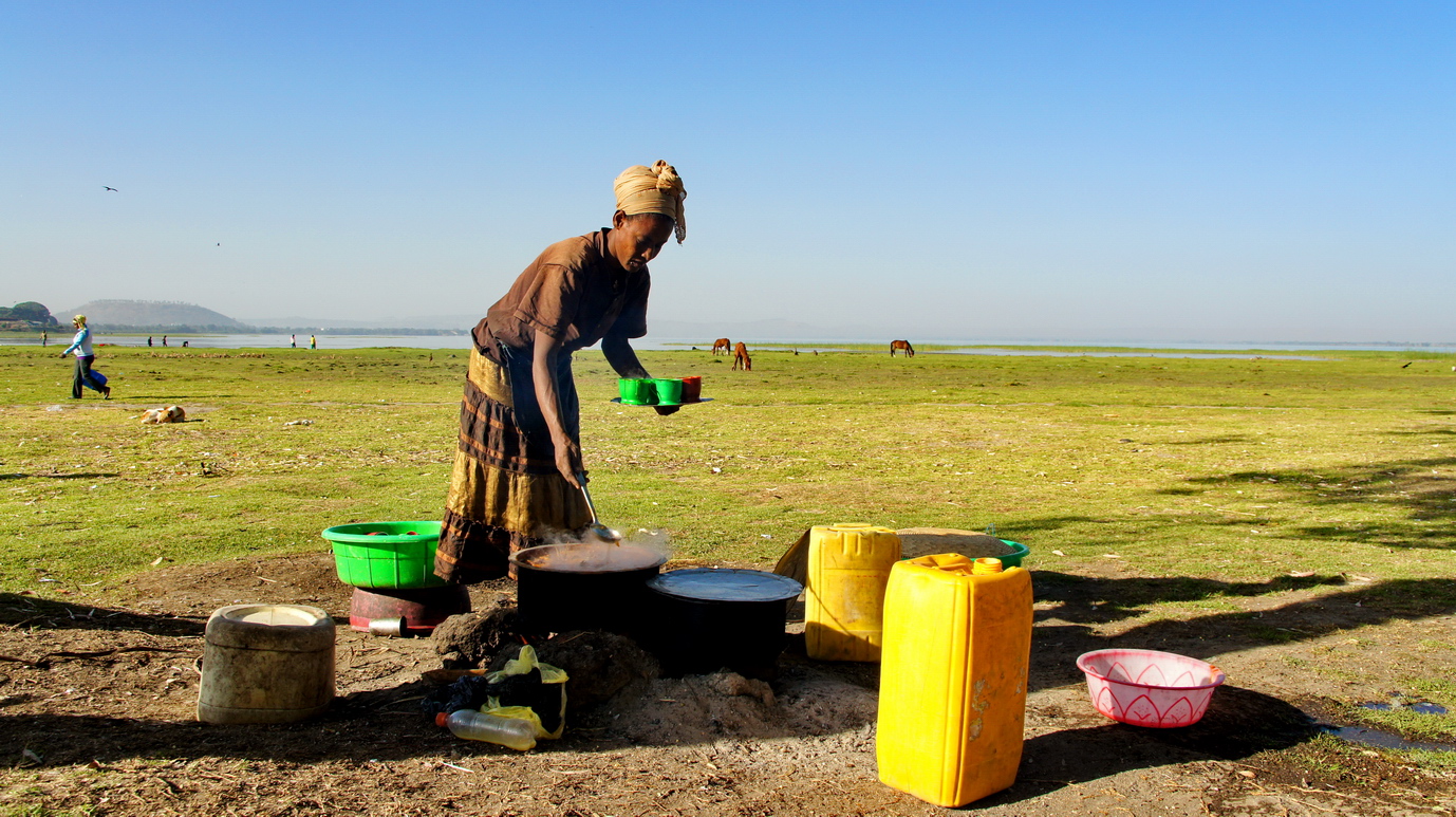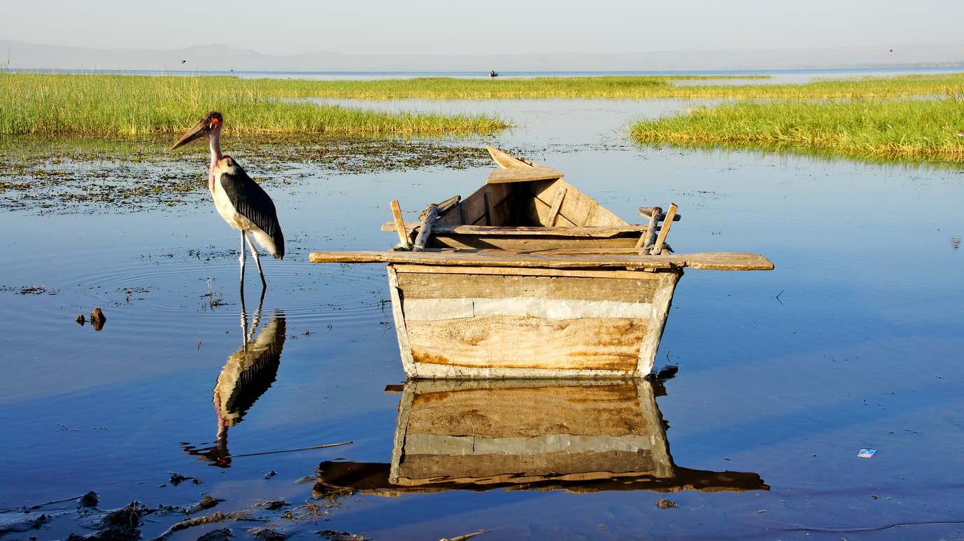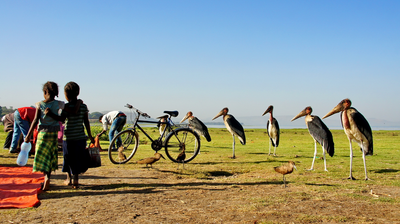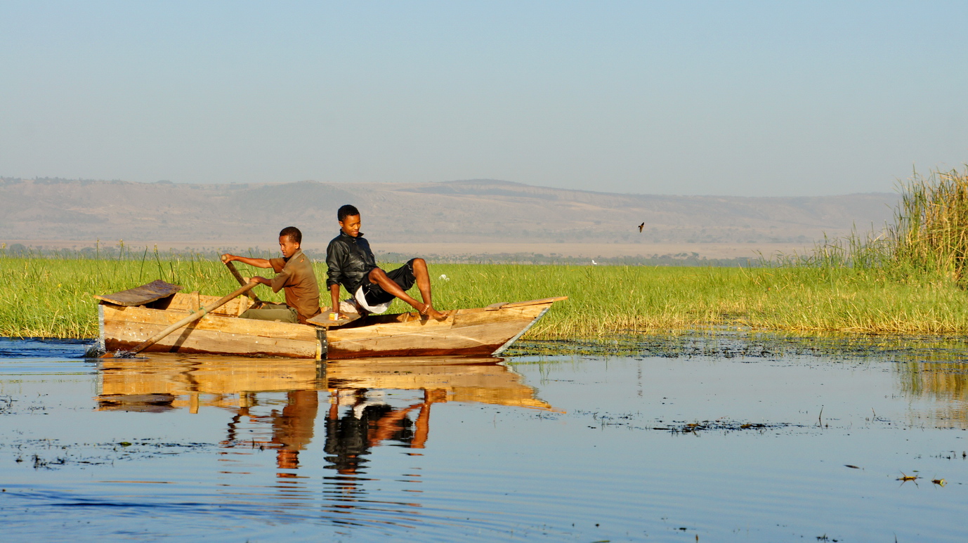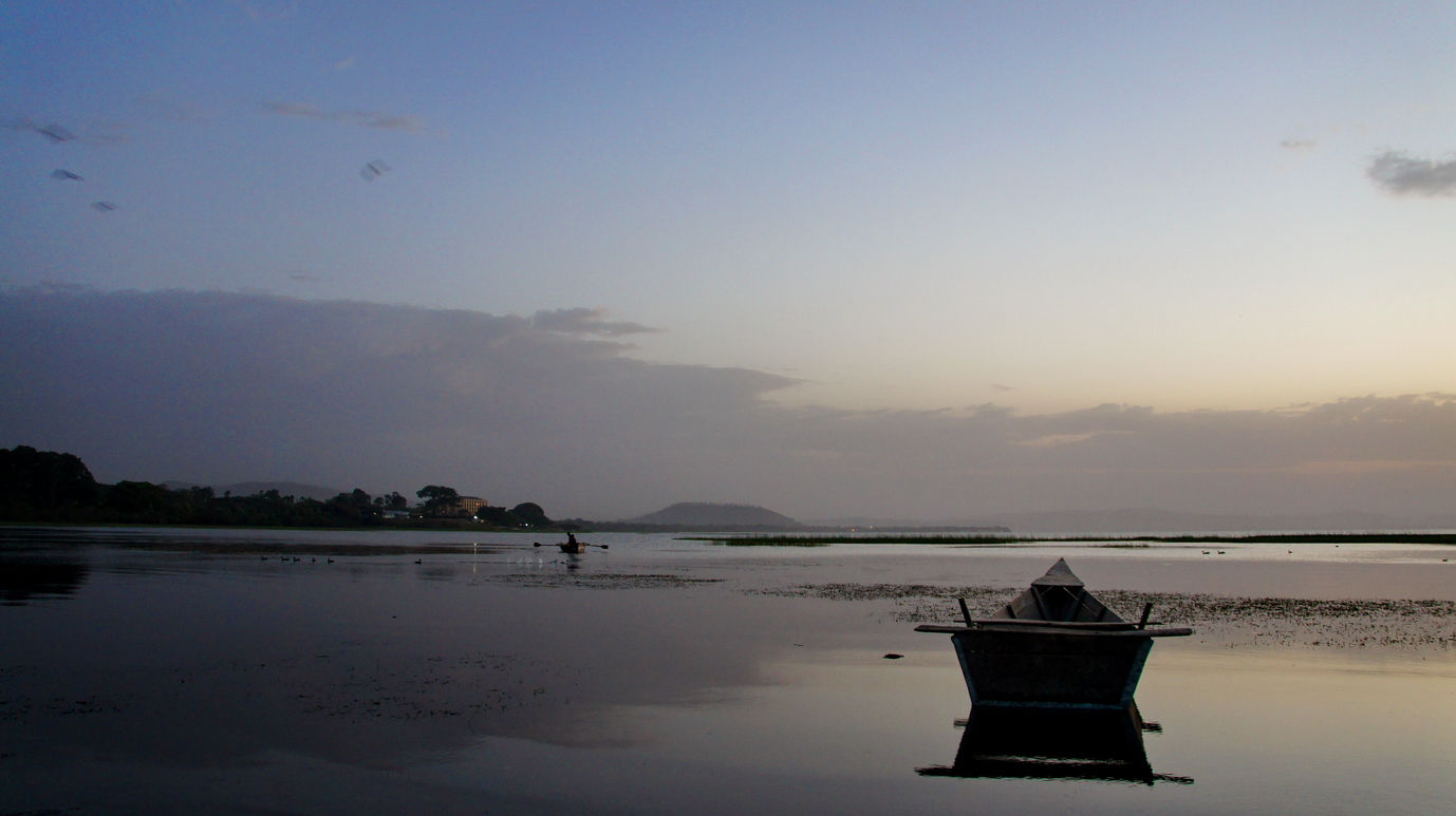 露营阿瓦萨,夜里帐篷附近几十米的草地上,犀牛在大口吃草,夜色中,繁星遍布,半月仍努力照亮整个天空;远处湖面的一群群鸟儿偶尔被惊醒,传来阵阵叫声。虫鸣鸟叫,远处传来一阵阵非洲的歌舞声....傍晚的阿瓦萨湖一片金黄,众多鸟儿仍在湖面觅食,几个跟着我的埃塞小孩子调皮的很,远远的就踏进湖里,把鸟儿赶起阵阵。早晨的阿瓦萨湖畔是一个鱼市,渔民打渔上岸,鱼儿立刻就被收购,现场处理后,进入岸边简陋的鱼厨房,炖成早餐的鱼汤...另外一边进入阿瓦萨的河里,罗非鱼被一网网的拾起,扔在岸边,卡车载走。渔民们现场处理鲜鱼,割下一块块晶莹剔透的鱼肉,蘸上辣椒酱,就上薄饼,就是一顿美味的早餐...阿瓦萨湖边的记忆,仍能不断在夜里记起。