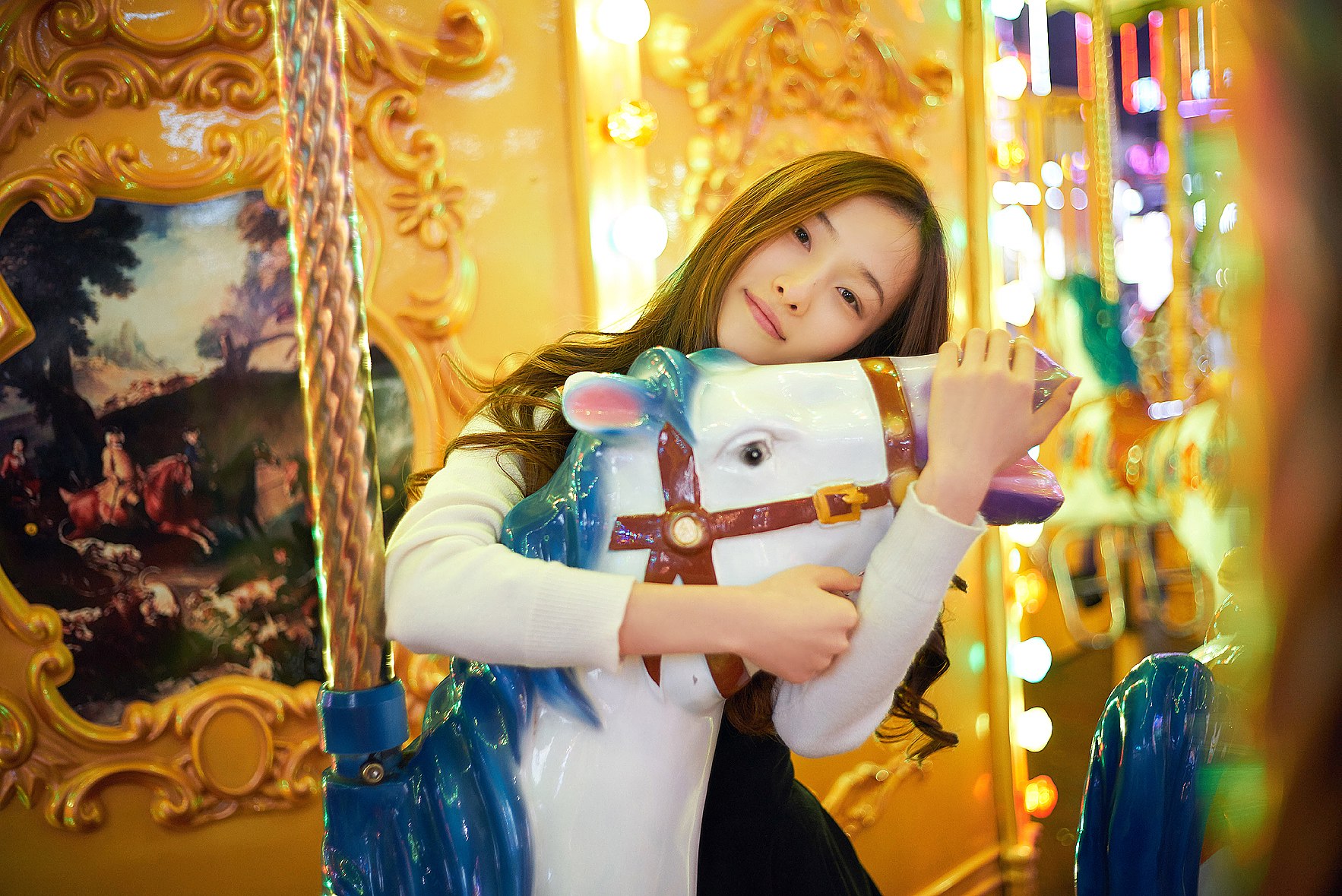夜空下,木马在旋转,花儿在绽放,悄悄的不能让蝴蝶知晓。