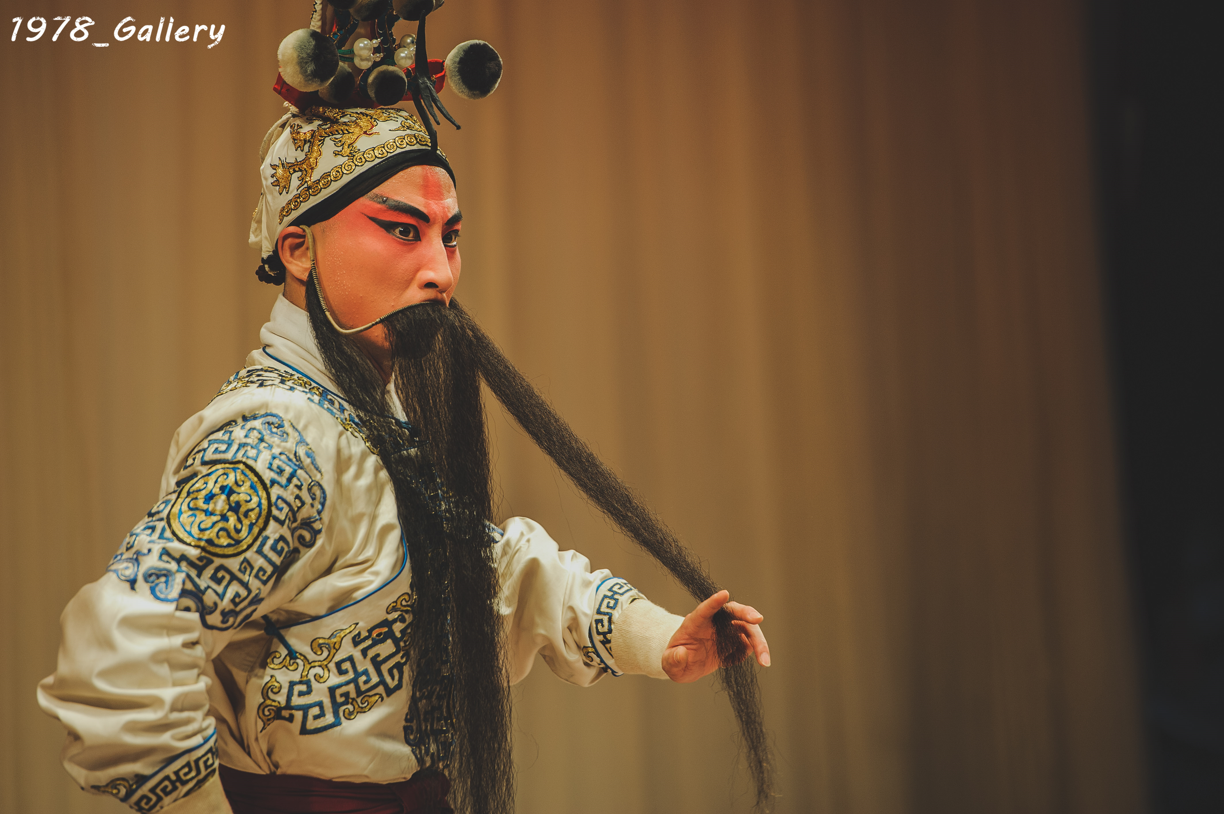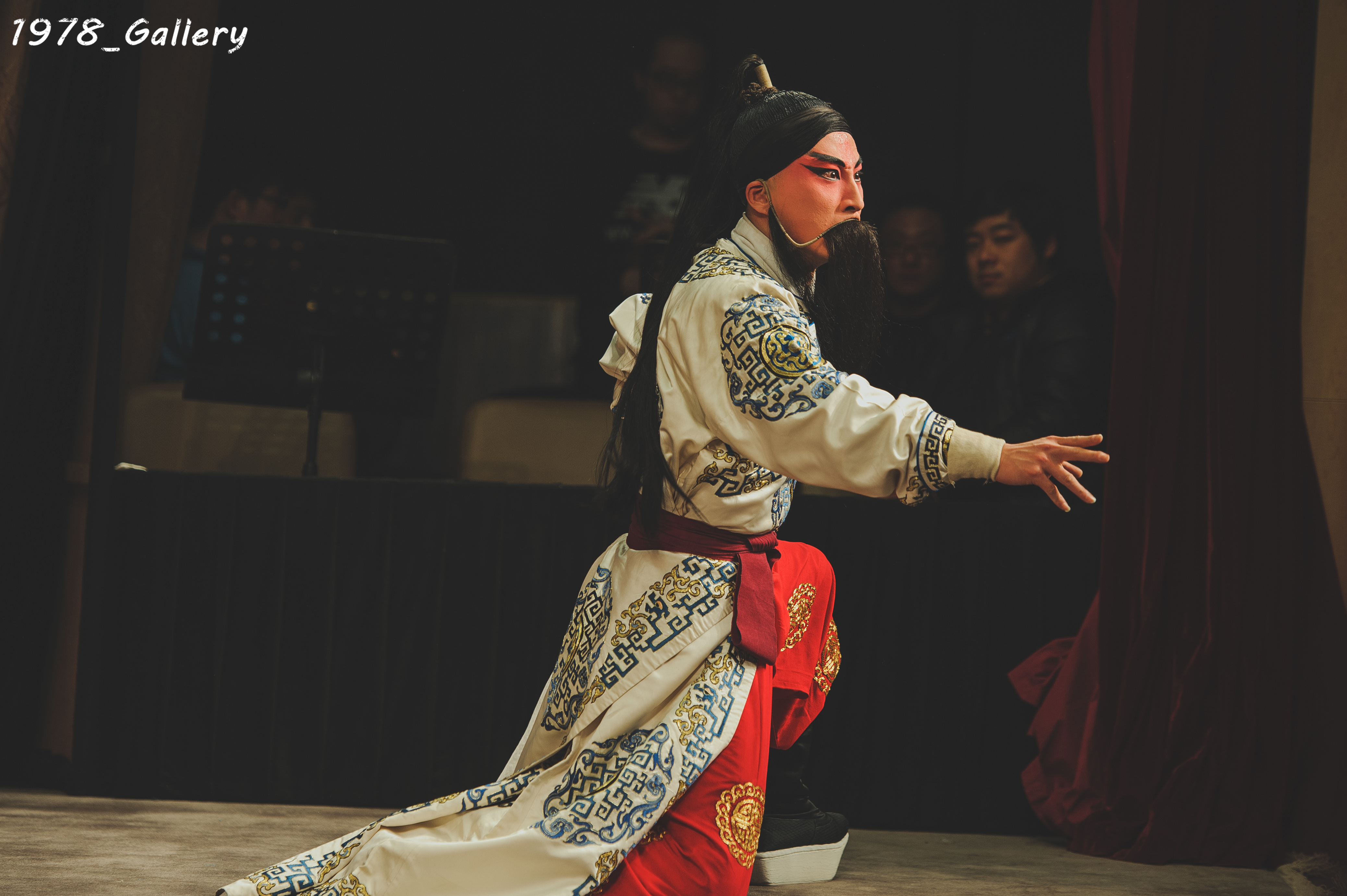 当年由有“小盖叫天”之称的盖叫天之子张剑鸣将《一箭仇》传授给上昆的周启明,而周老师将这出戏传授给了贾喆。作为武生演员的重头戏,该剧唱念做打俱全,其中枪、刀的开打非常精彩。贾喆在剧中饰演的史文恭,靠长靠、短打于一身,既有长靠武生的靠把功、厚底靴功、又有短打武生的箭衣功等。特别是髯口表演极为讲究,抖、摆、捋、甩、挑,交相辉映。
