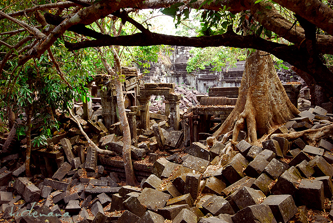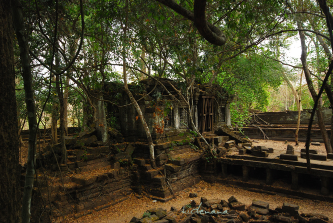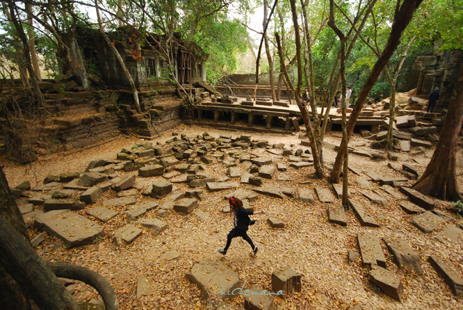 暹粒-吴哥窟: 崩密列(Beng Mealea)在崩密列,你可以看到吴哥窟未被发现前在丛林中沉睡的模样,它是吴哥遗迹群中最值得去同时也是最难前往的遗迹。(因为远了一点儿)这里依然被丛林严密包裹着,由于比较荒僻,丛林的神秘气氛在断裂的柱石、坍塌的墙壁间弥漫,大有探险的味道。