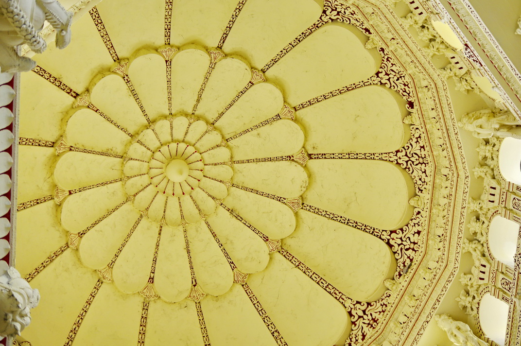皇宫顶部,这座建筑是有印度风格和蒙兀儿风格两种风格融合的建筑,所以看上去有点欧洲建筑的风采,但是仔细看上去是印度的特色。