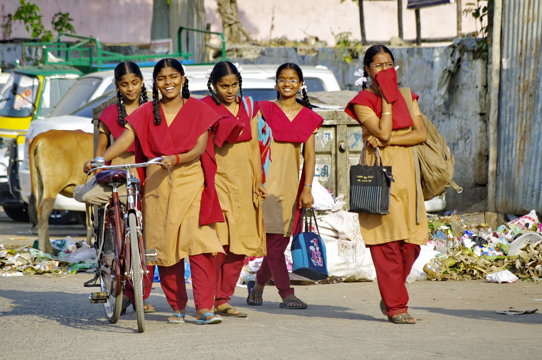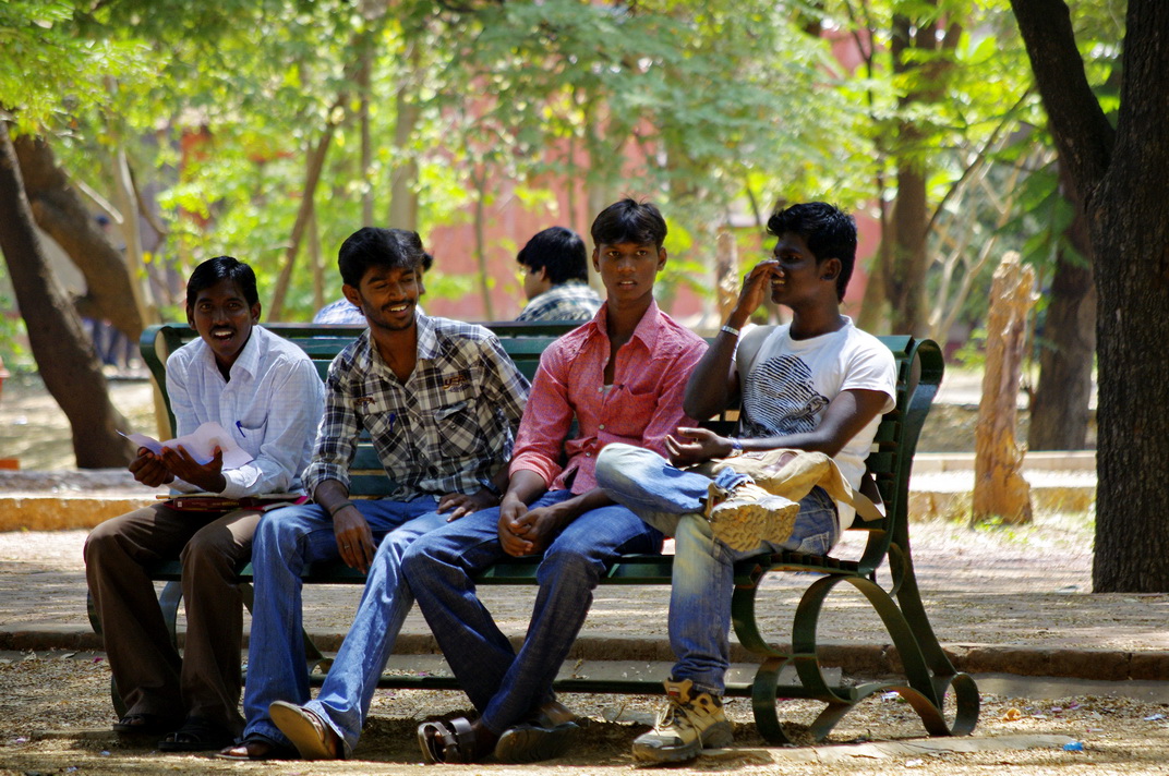 马杜赖的美国大学几个学生在树下乘凉,在这里你看不到男女一起的任何身影。男女没结婚前是不允许在一起的。