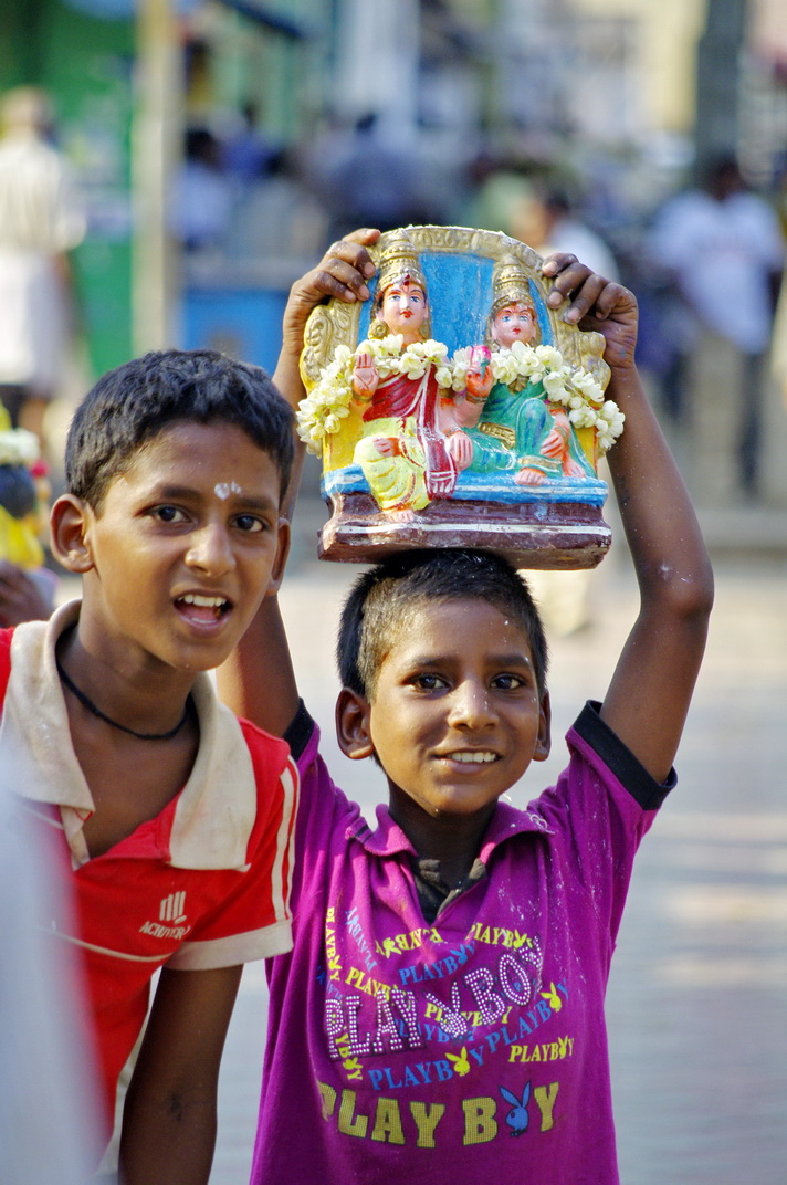 顶着雕像的印度男孩,一帮人追着我要拍照,结果是他们越挤越拍不了。