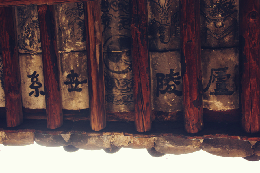 主人当年修建修建大院的时候将家族的世系提在了偏房的屋檐下,
