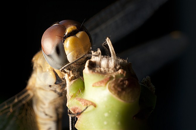 被discovery2012的昆虫作品所感动,今日下班前系公园捉的两只蜻蜓,回家后放开距地,一只乱飞,停左去吊灯上面,这一只就乖乖甘比我摆去发财树上做我模特,正!