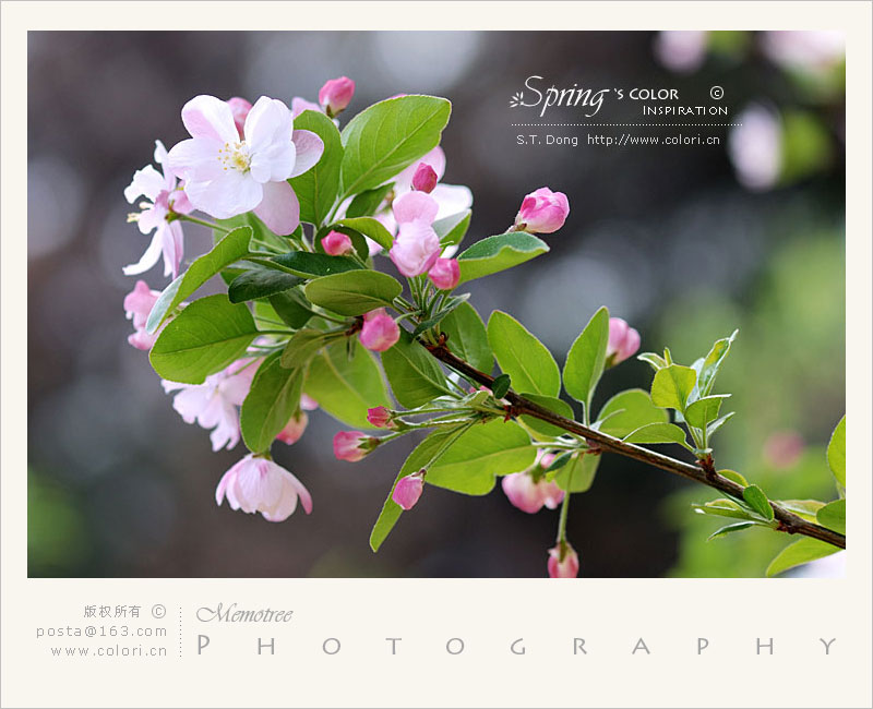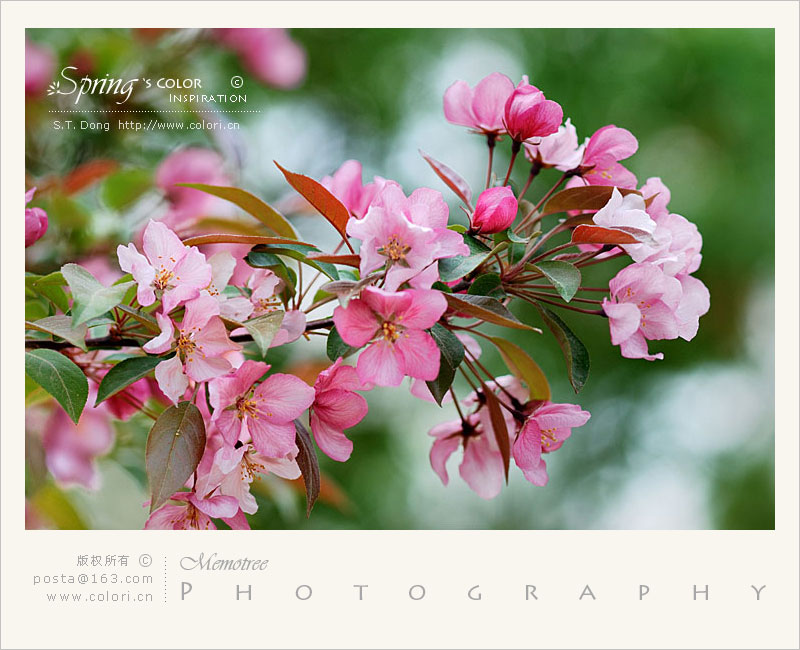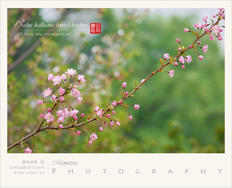 有很多图上已标学名,有兴趣的朋友可以自己查对一下。这组里有垂丝海棠。还有一种暗红色的海棠