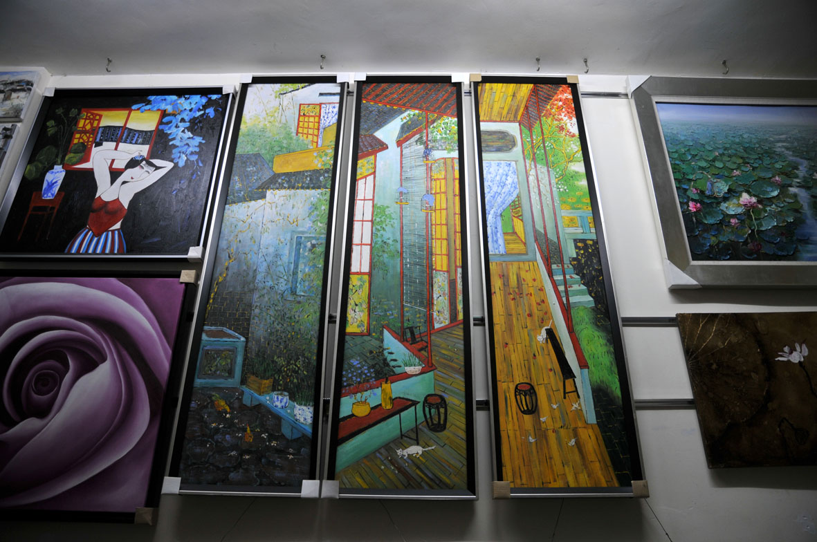 完成的商品在晾干等待画商来收画
