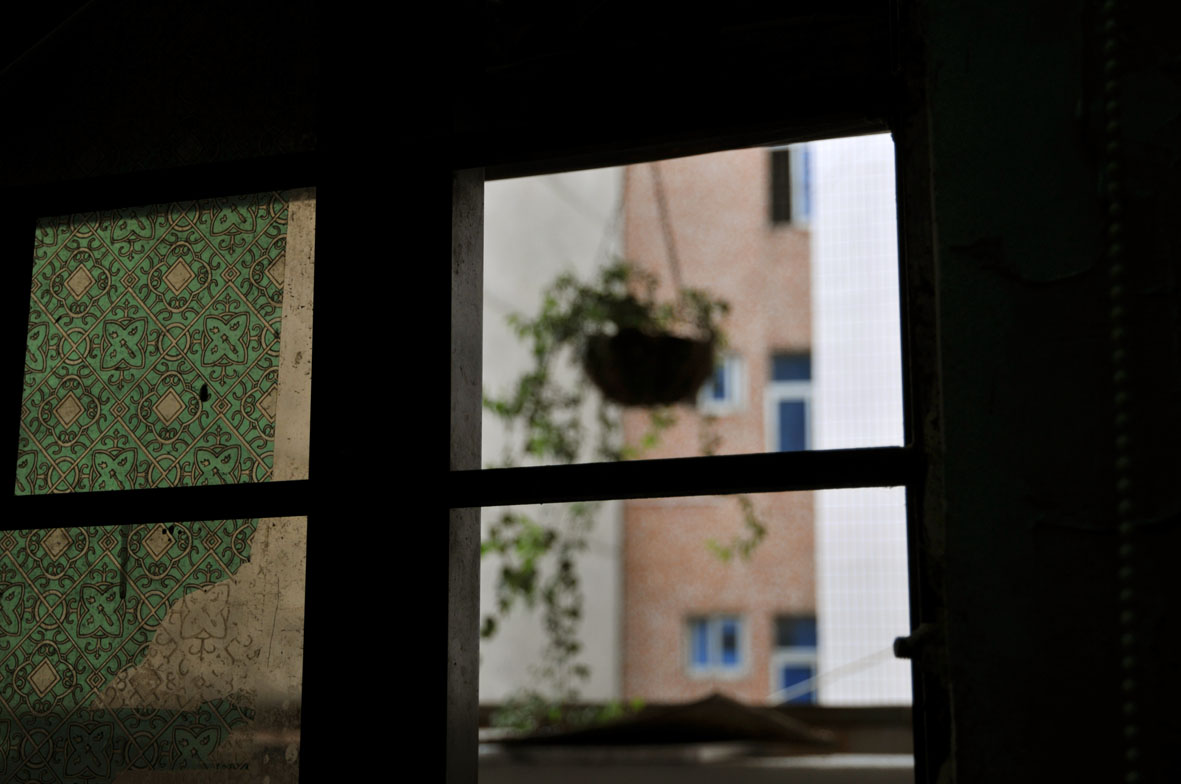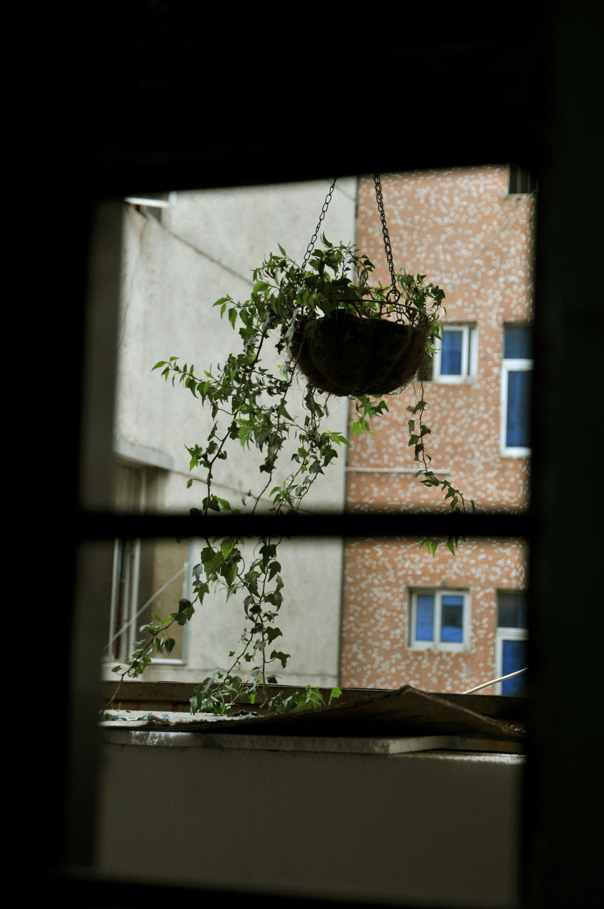 从他办公室拍到窗外阳台的吊兰