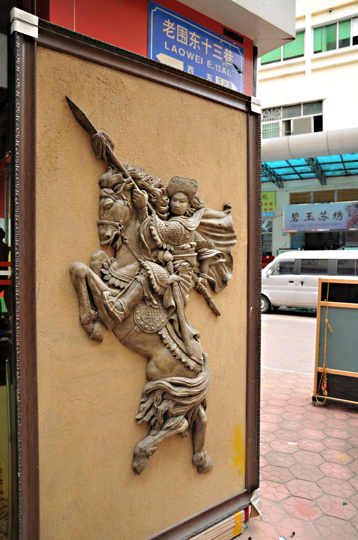 我是从后门进入大芬,这张是靠左的一个长廊,里边有大小几十家店,国画、书法、雕刻、油画、装饰画、工艺品你想到的想不到的各种玩意应有尽有……