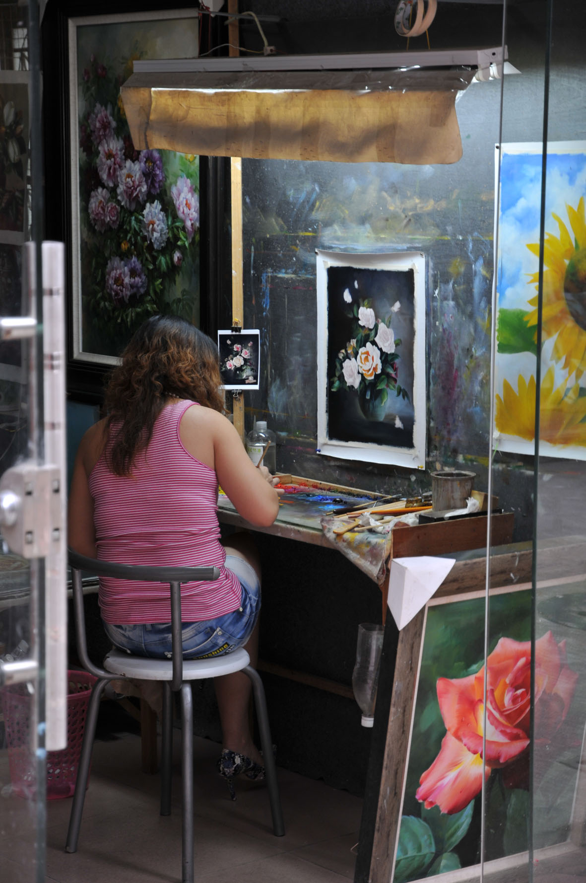 这个油盒子有二十多年的历史这家的大姐告诉我生意如何的难做,画师如何的辛苦、外地商人如何的能赚钱