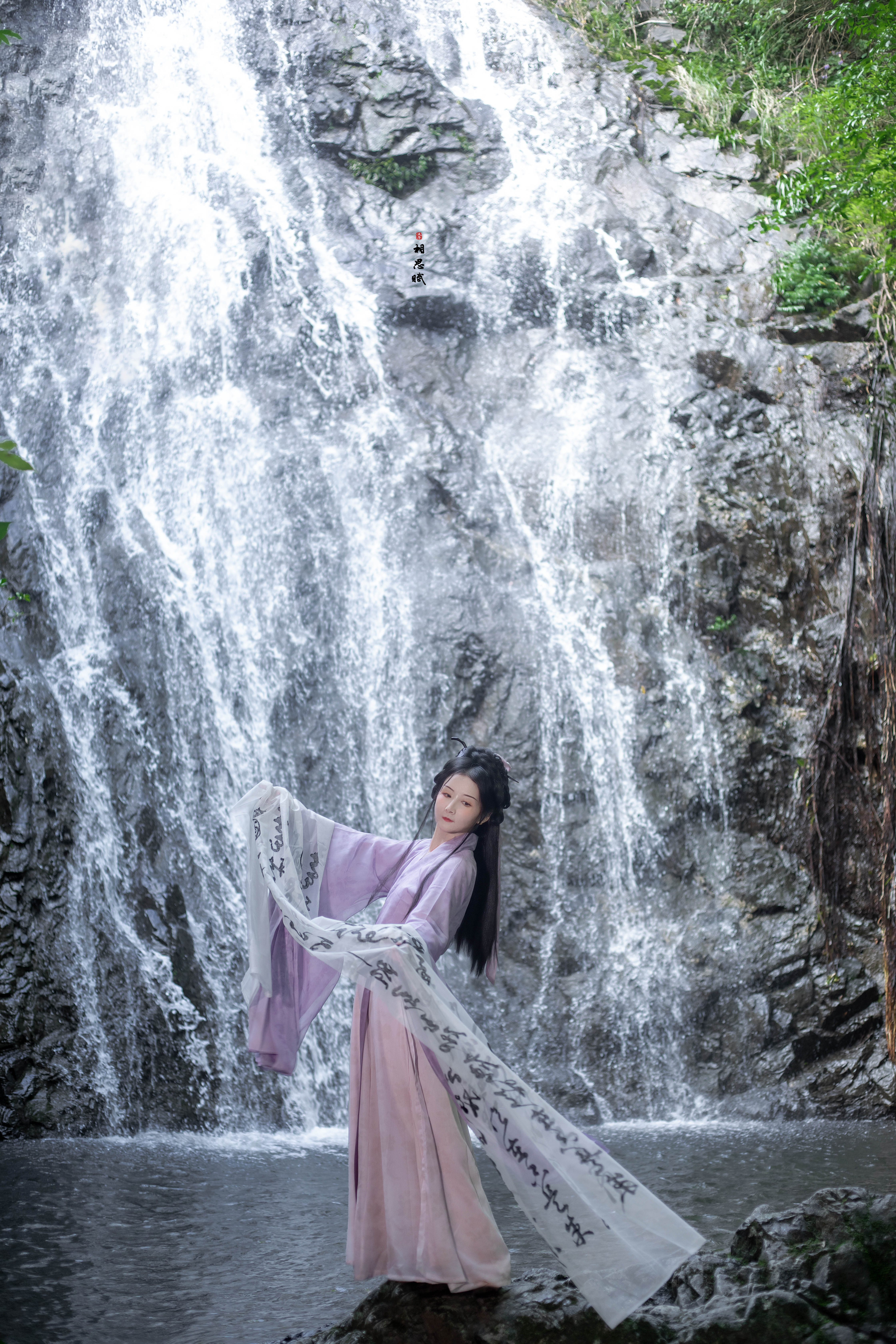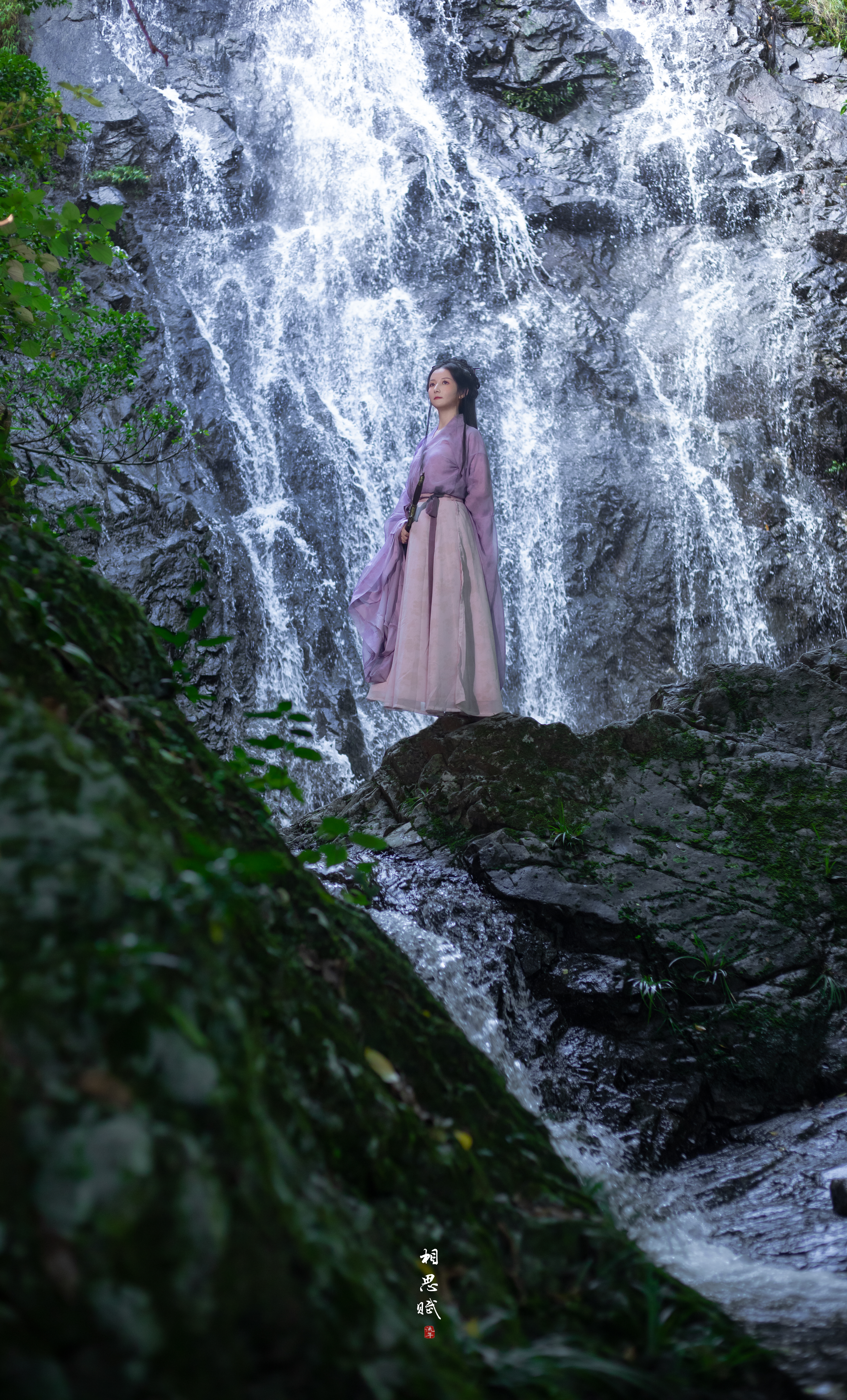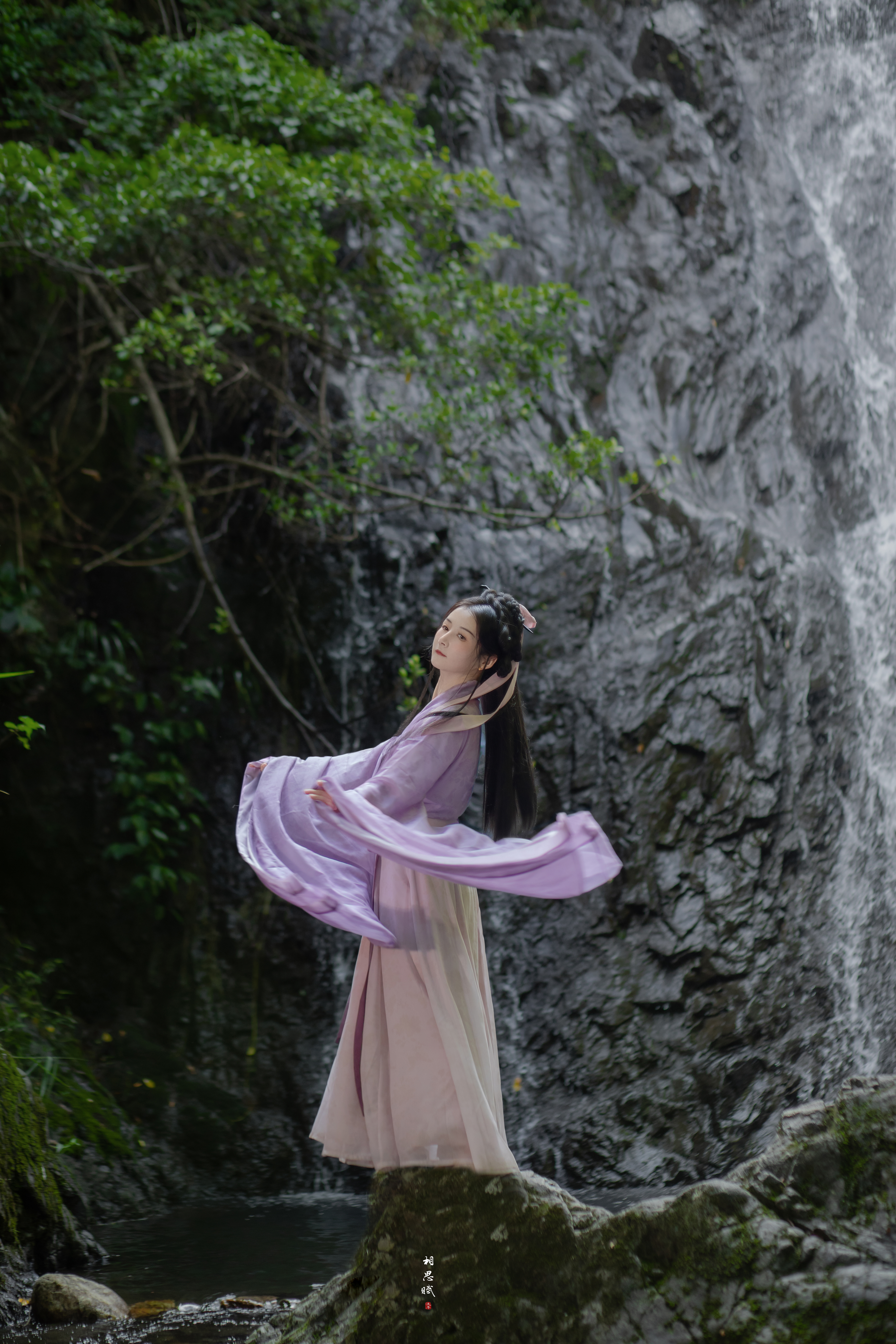 瀑布与汉服的碰撞