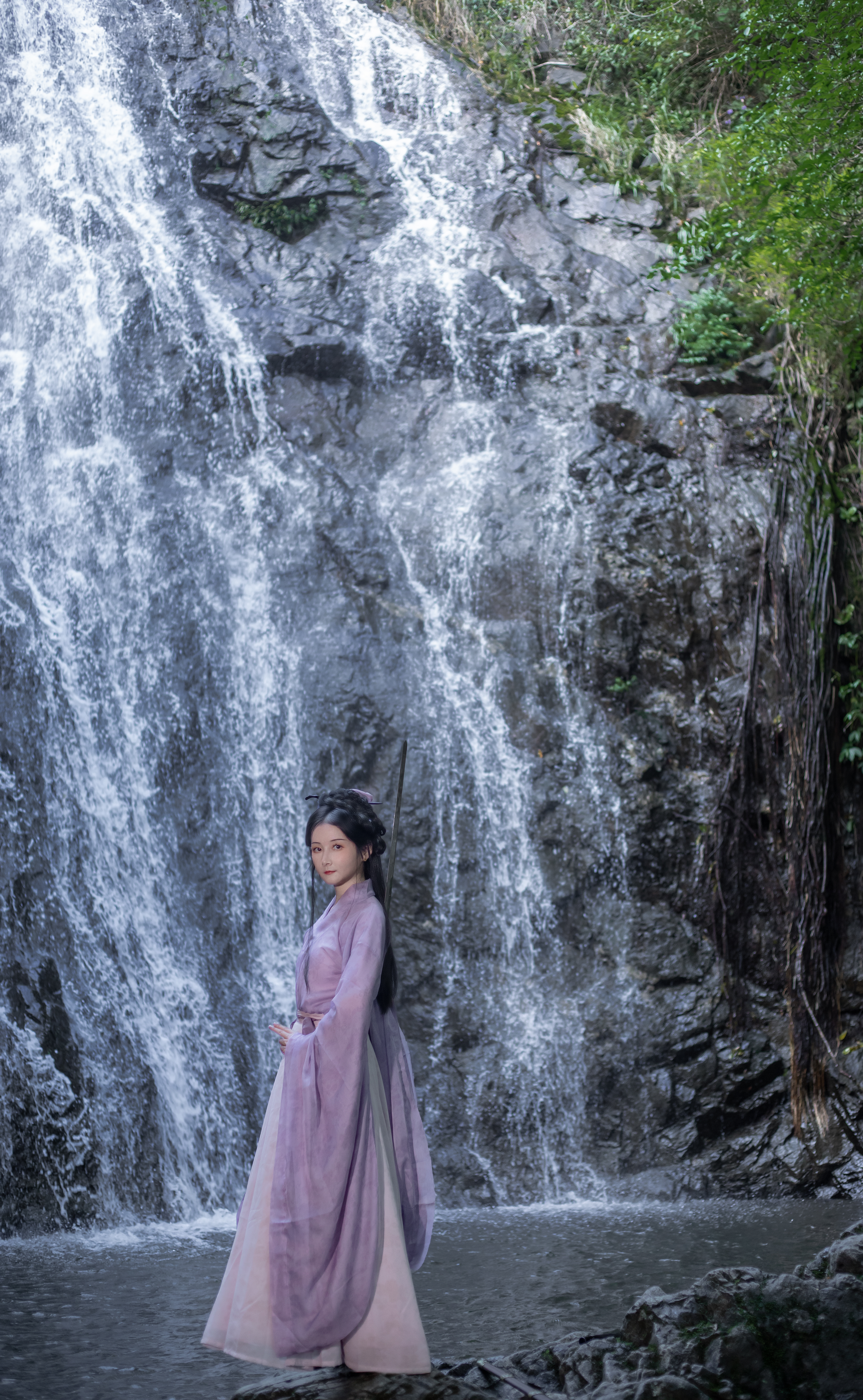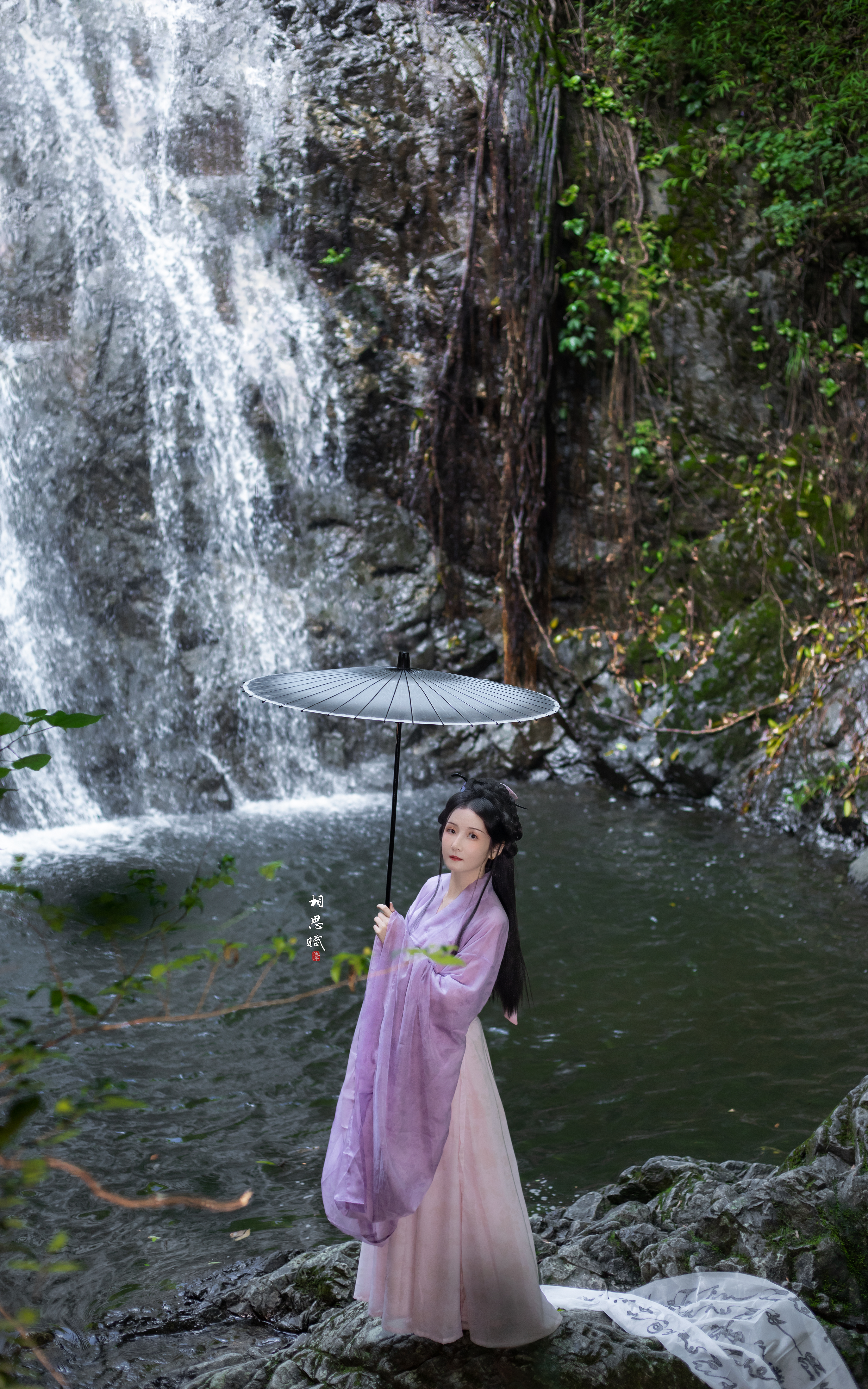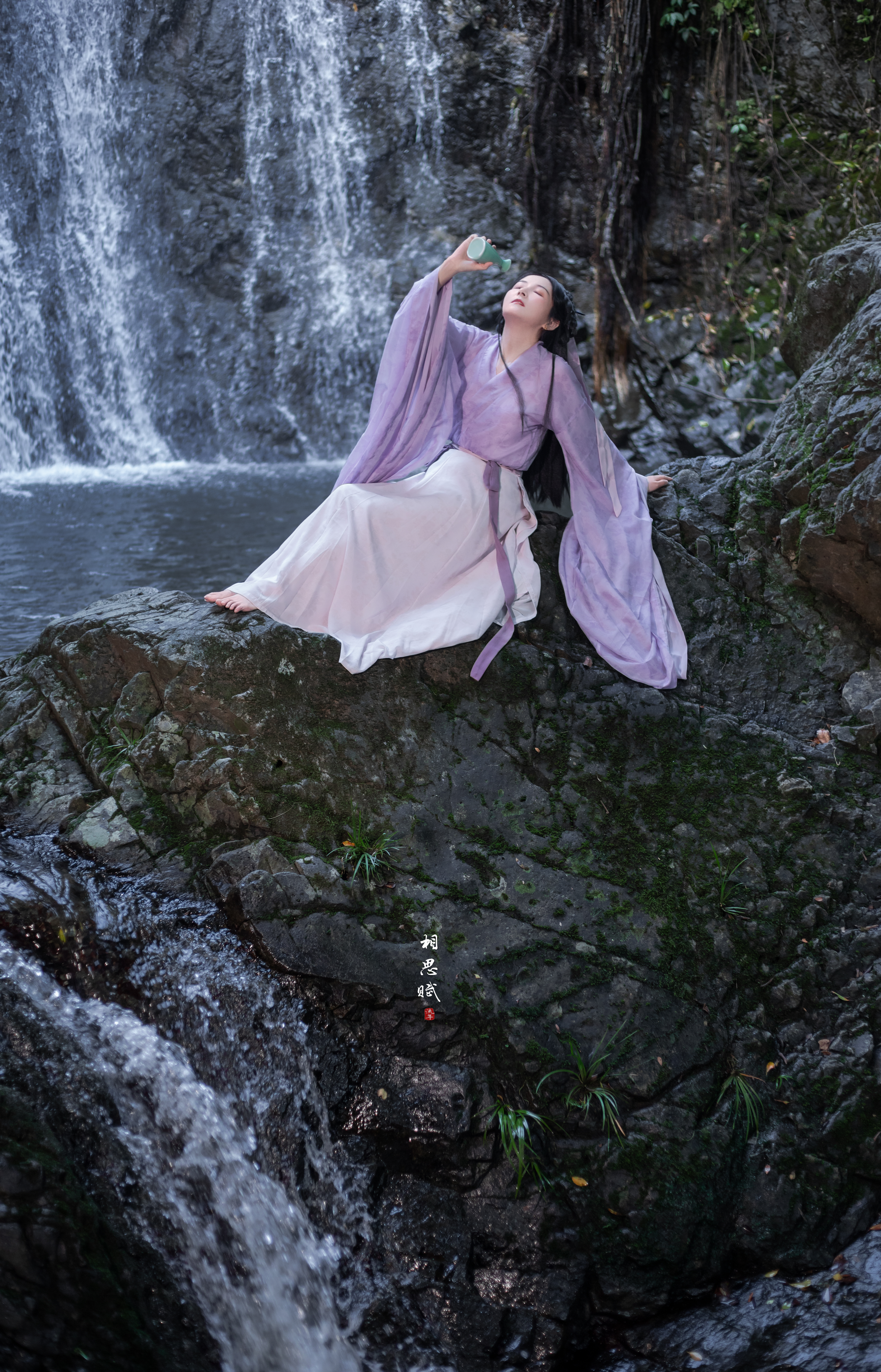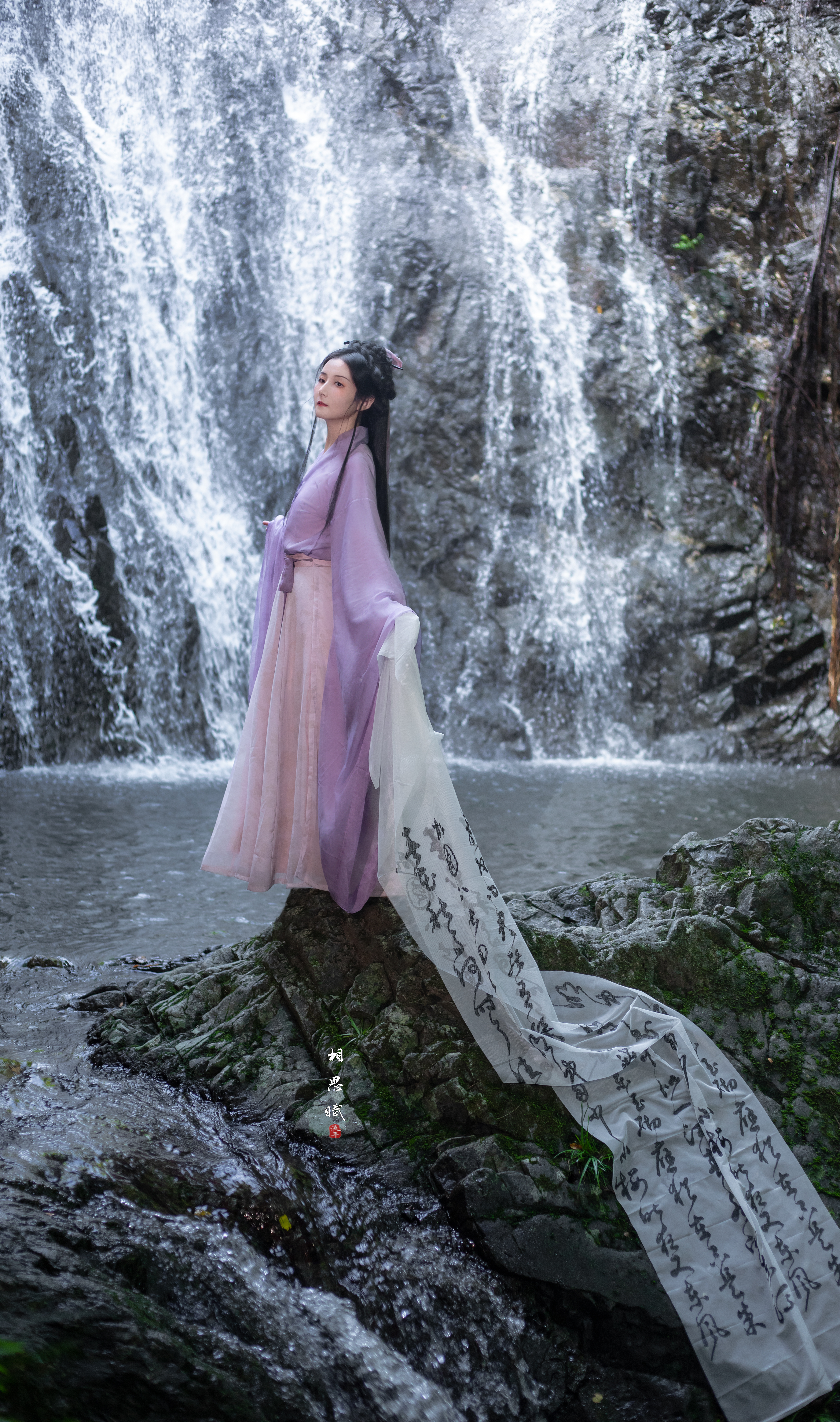 瀑布与汉服的碰撞