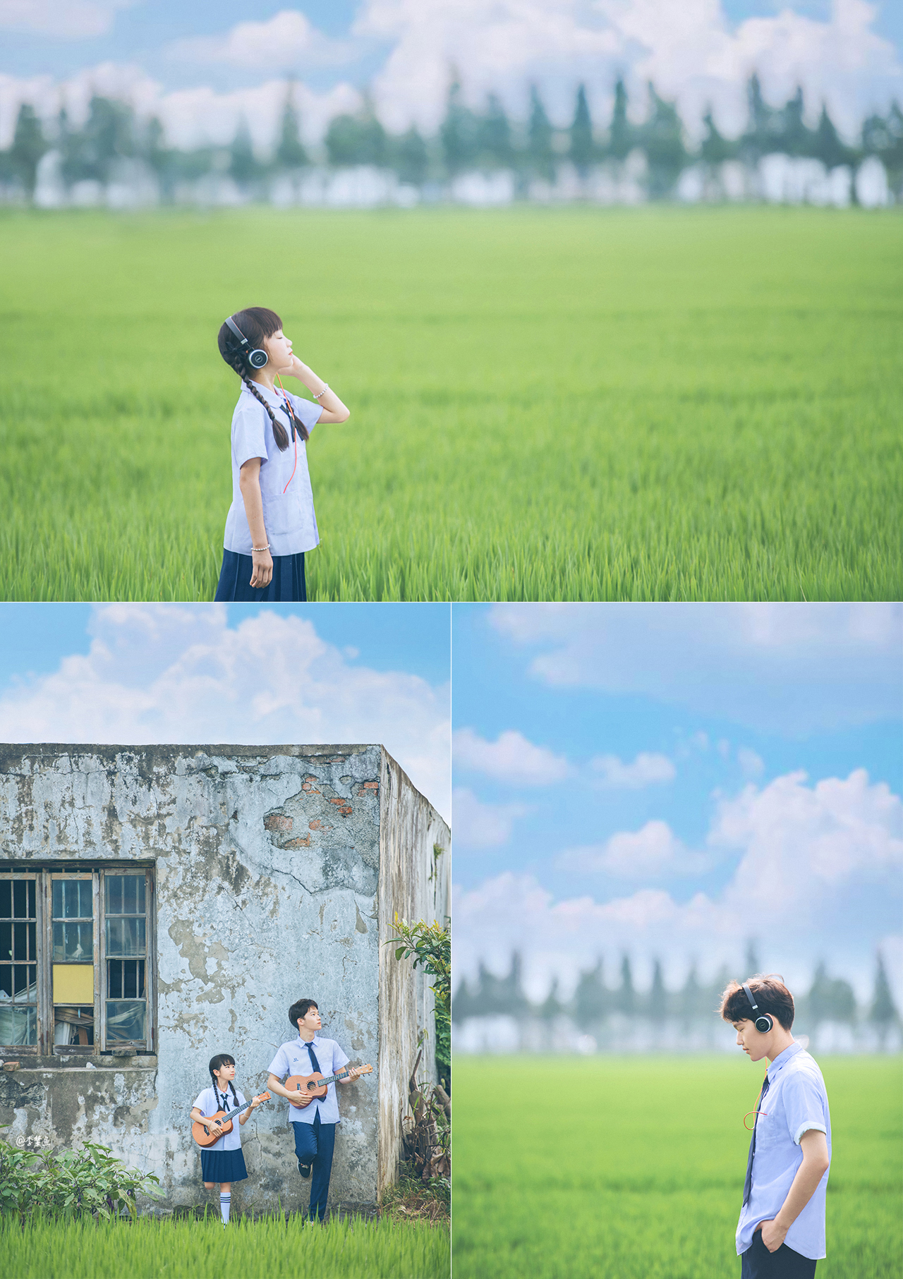 翠绿的稻田里,我们凝听风的声音,调皮的音符跳跃在空气中,写满了整个夏天。