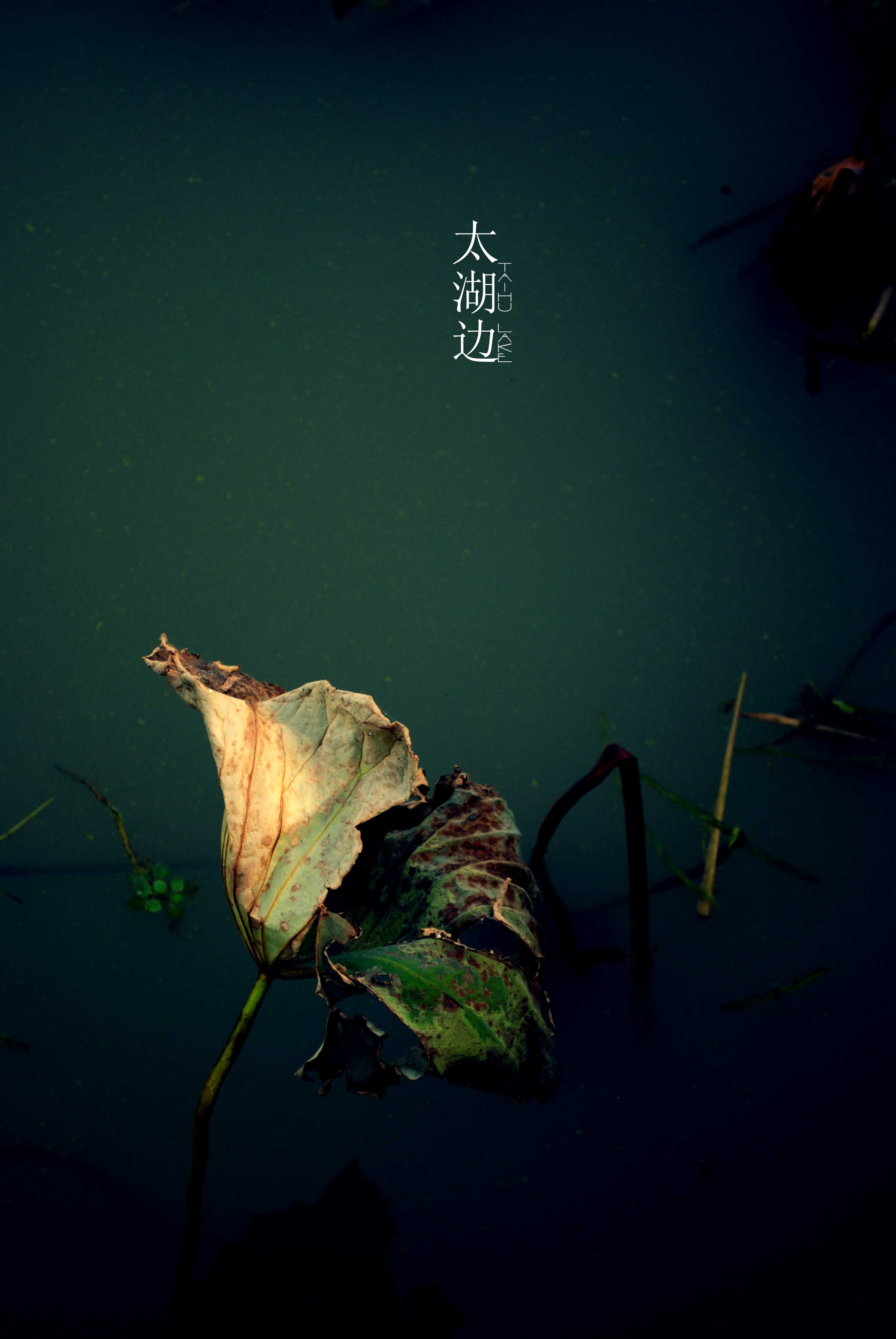 几张烂荷叶在湖边悄悄生长默默黯然