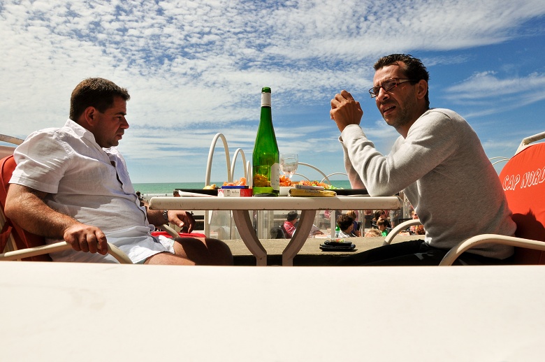 到Wimereux的第一件事就是跑到海滩边的露天餐馆吃一顿法国北部非常有特色的贻贝,13.5欧,太鲜美了,这里一定要着重强调下!这张是把相机放在桌上偷拍的,呵呵。