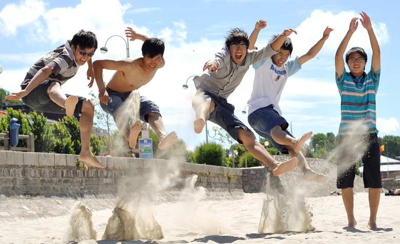 早上先到Boulogne海滩,海滩没什么人,沙子很白很细,简直可以做沙漏里的沙子。男生就踢沙滩足球,女生后来也加入。最后踢累了,就做各种各样囧的动作,哈哈!