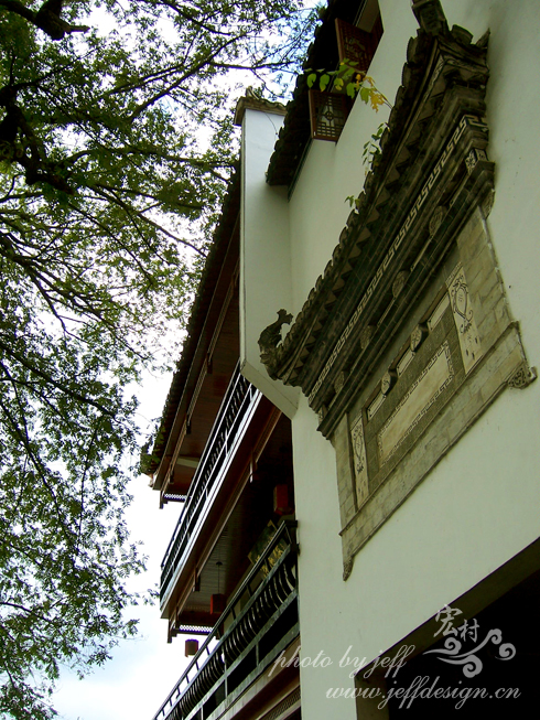 上了高速车子直接开到了宏村,电影《卧虎藏龙》很多的镜头就是在这里拍摄的。这里是清一色的马头墙建筑,灰墙黑瓦,渠水潺潺,庭院幽深,既能感受到古代书香的意境,皆能体会徽商富足奢华的气势。