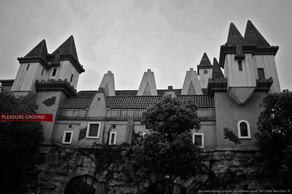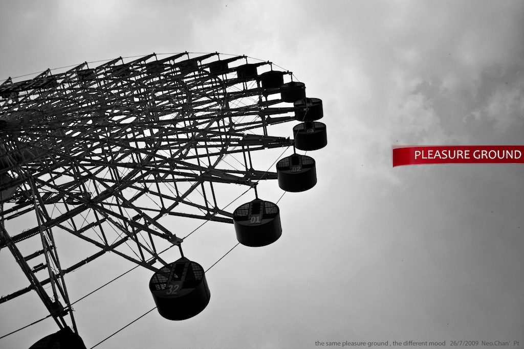 杭州乐园拍摄,周末一早从西到南驾车近1个多小时到达,发现排队等候的人已经多到让人晕厥了~“游乐”的同时只好摄影消遣,本想玩的尽兴些打算不带相机出门的,(老婆总是抱怨:出来玩还是拍拍拍啊!~)现在看来幸好带了~。由于又是阴天,400D根本出不了颜色。于是索性黑白伺侯~