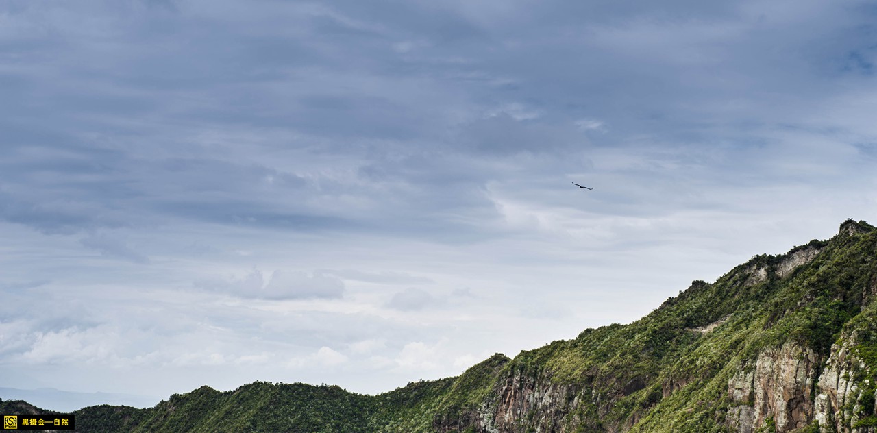 一只老鹰掠过山峰。