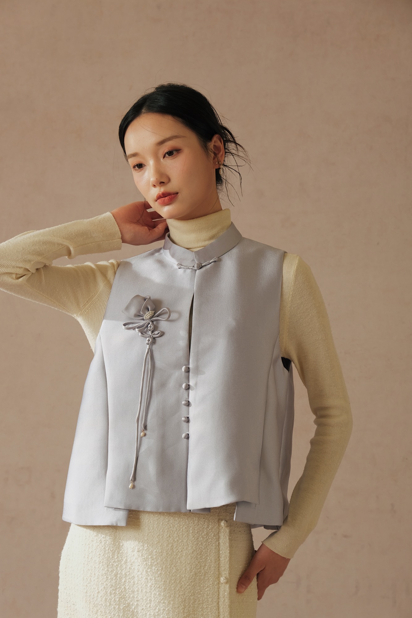 2023 拾白SHIBAI 新中式秋季服装拍摄 摄影:@小黑Ray_ 后期:@小黑Ray_ 模特:书瑾 品牌:拾白SHIBAI 夏末尽,秋已至,一夜新凉,一夜至秋。
