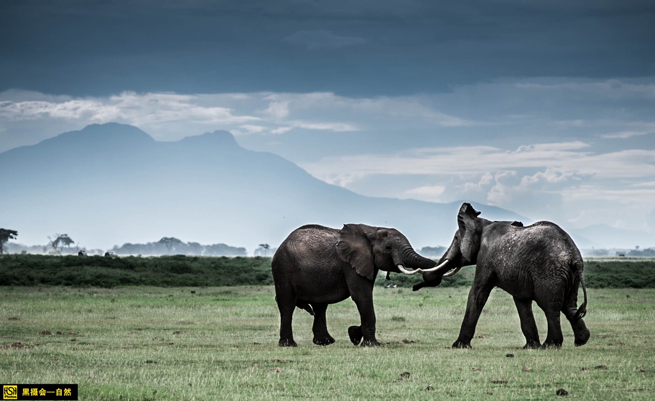 安布塞利国家公园里打架的大象。