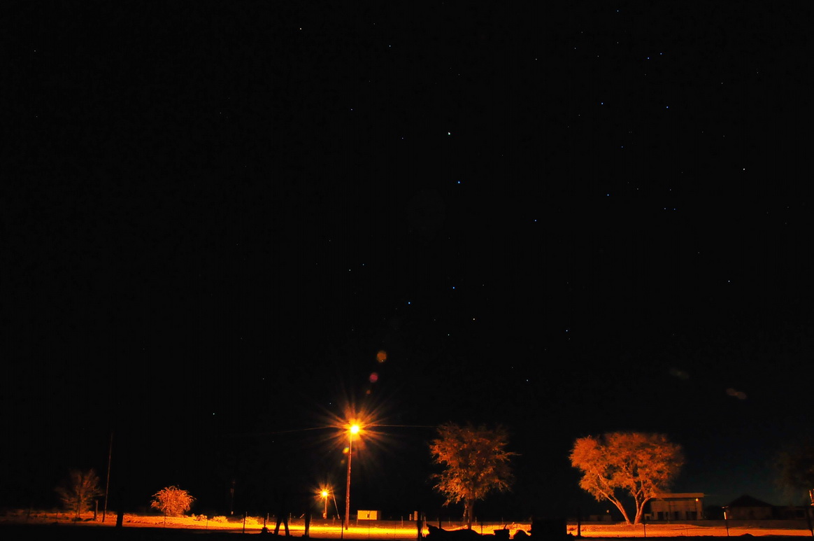 距纳米比亚南部八十公里的野外,有一个华人农场,农场内万籁俱寂,半夜在院子的树下,练习拍摄一下星空,相机不行,在外面冻的哆嗦,拍了两张赶紧跑进房内。