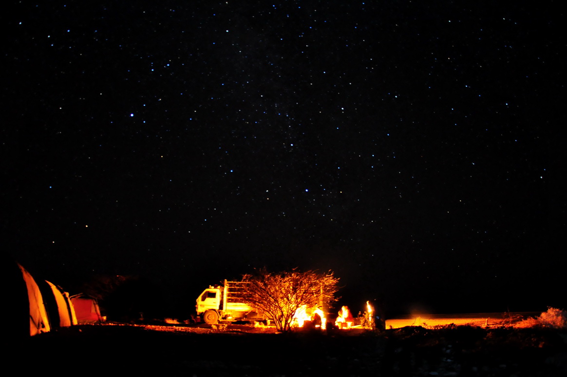 纳米比亚南部,露营野外。漫天繁星总会让人想家,旅途的生活比较无聊。在帐篷里用笔记本电脑看一部电影,洗洗睡了。
