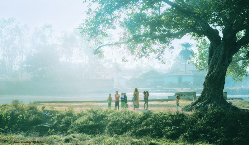 树下玩耍的少年