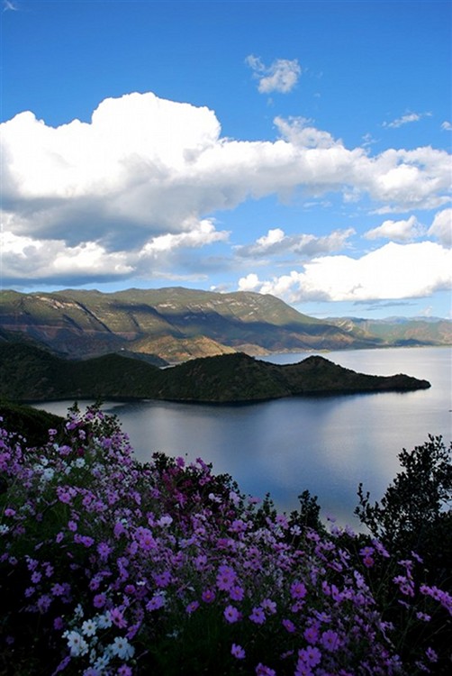泸沽湖古称鲁窟海子,又名左所海,俗称亮海,位于四川省凉山彝族自治州盐源县与云南省丽江市宁蒗彝族自治县之间。湖面海拔约2690.75m,面积约48.45km2。湖边的居民主要为摩梭人,也有部分纳西族和普米族同胞居住。摩梭人至今仍然保留着母系氏族婚姻制度。