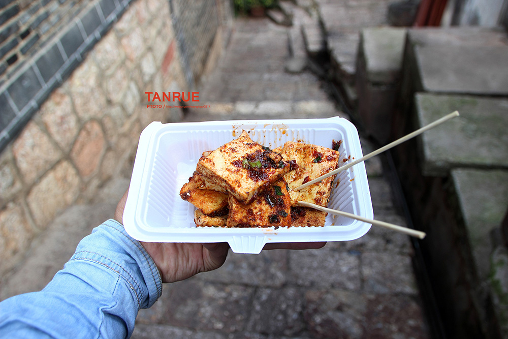 古城里面卖特色小吃的很多,尤其是古城的煎豆腐(十块一份,一份两片)个人很吃了,还有特色鲜花饼,味道还不错,不过牦牛肉就一般般了(而且还很贵)。