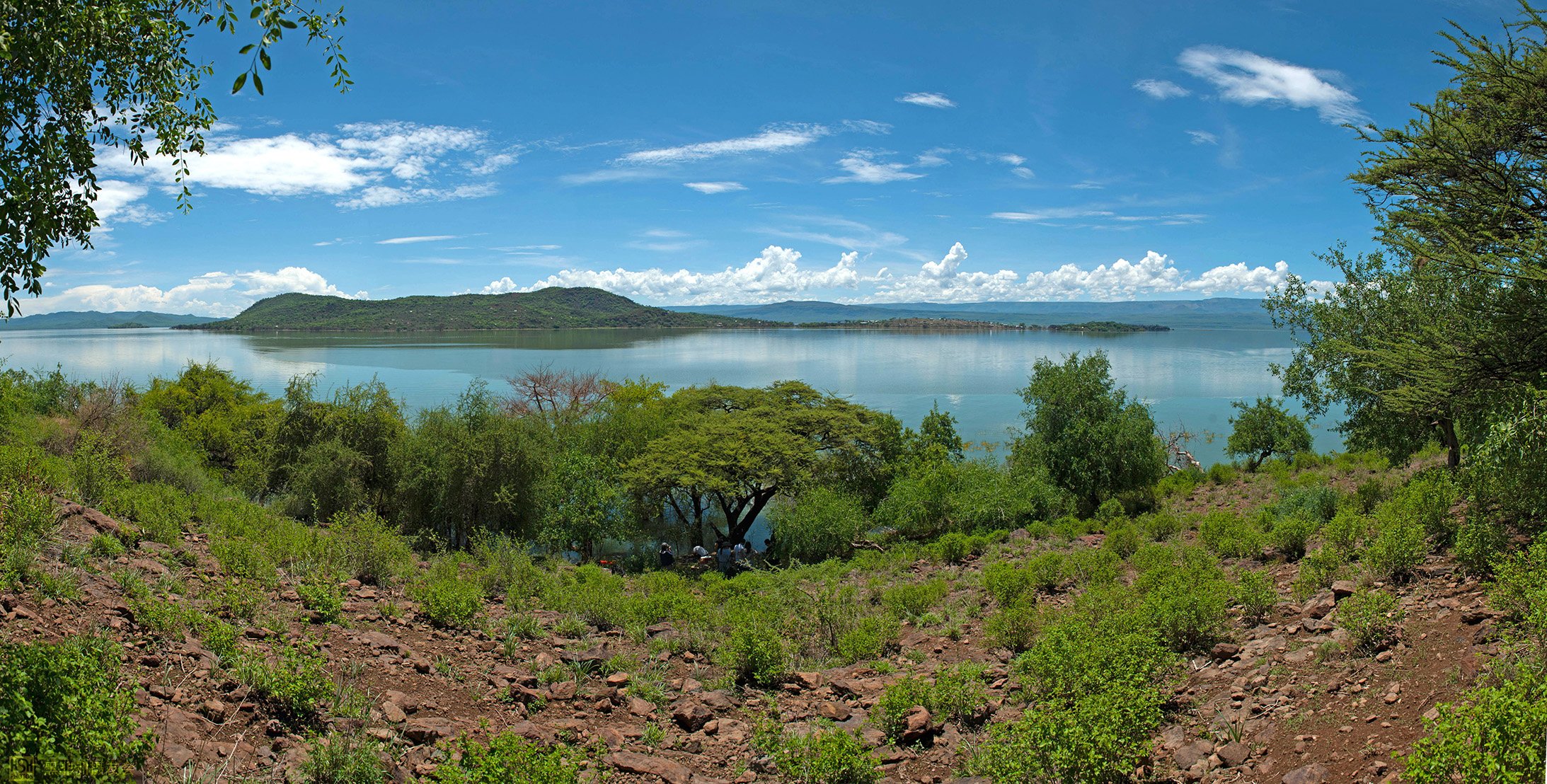 站在博林戈湖心小岛上,遥看博林戈湖全景图