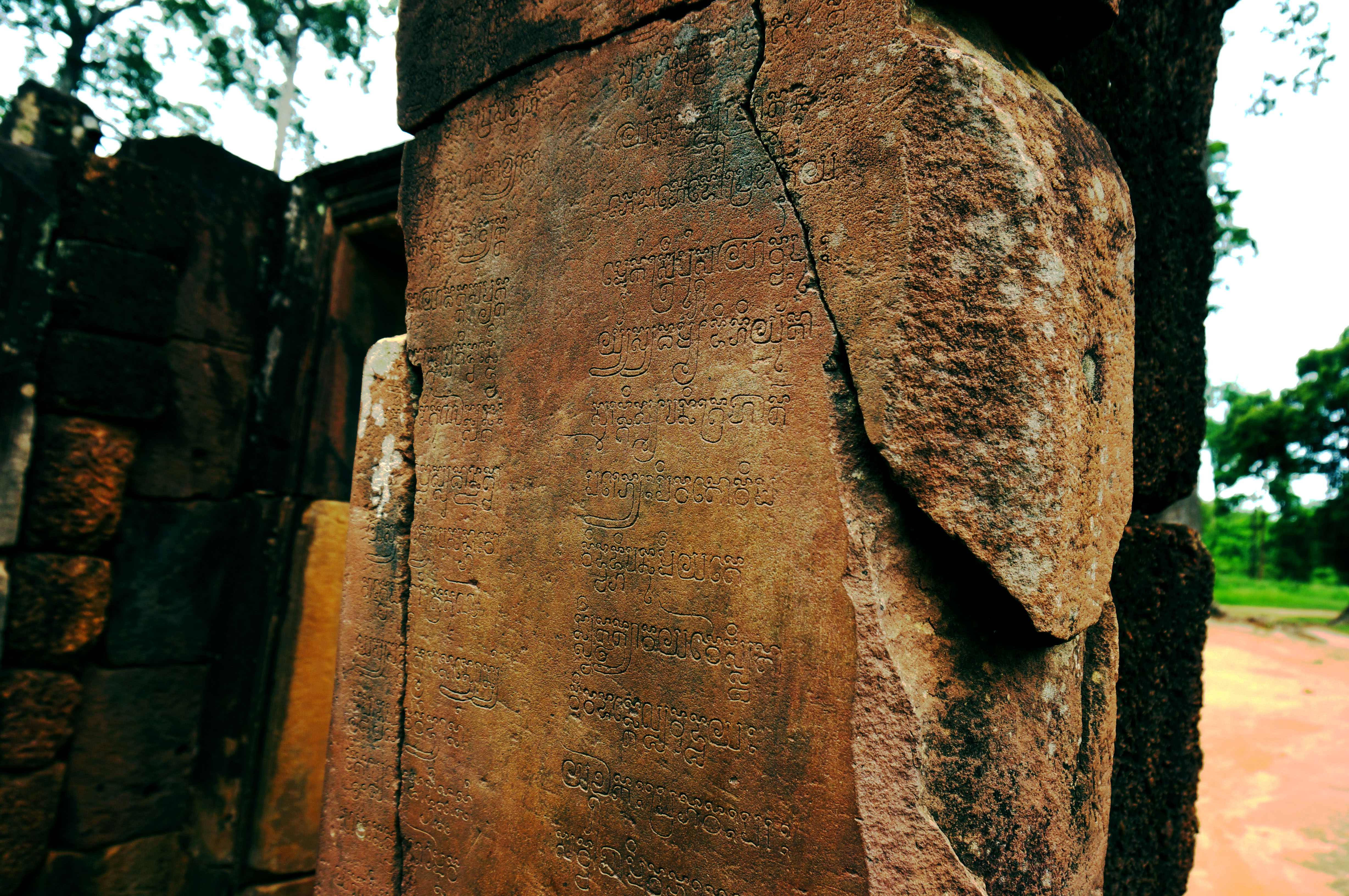 美丽的文字——柬埔寨暹粒女王庙中的一块石柱上的文字