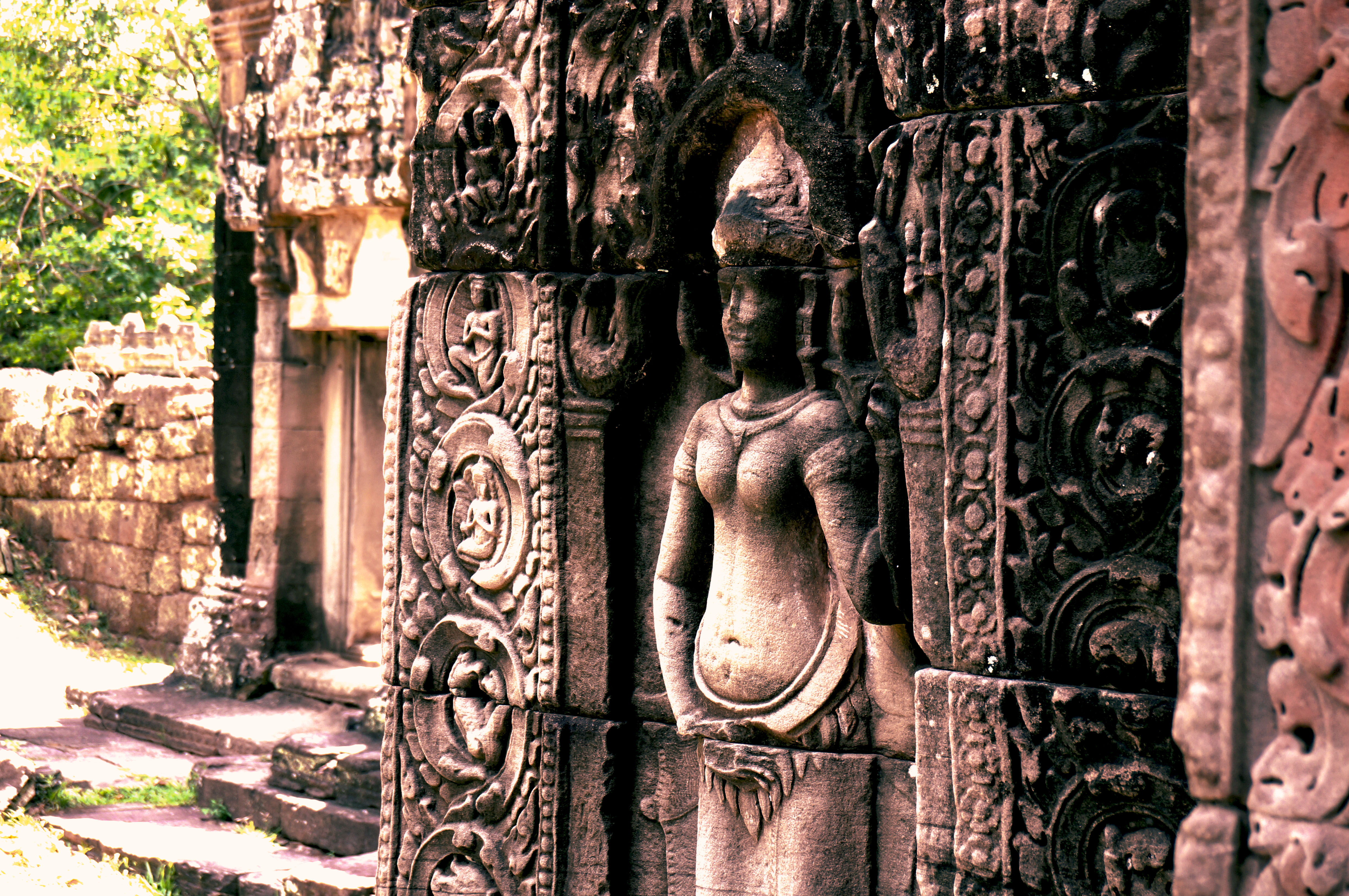柬埔寨暹粒女王庙建筑上的精美浮雕