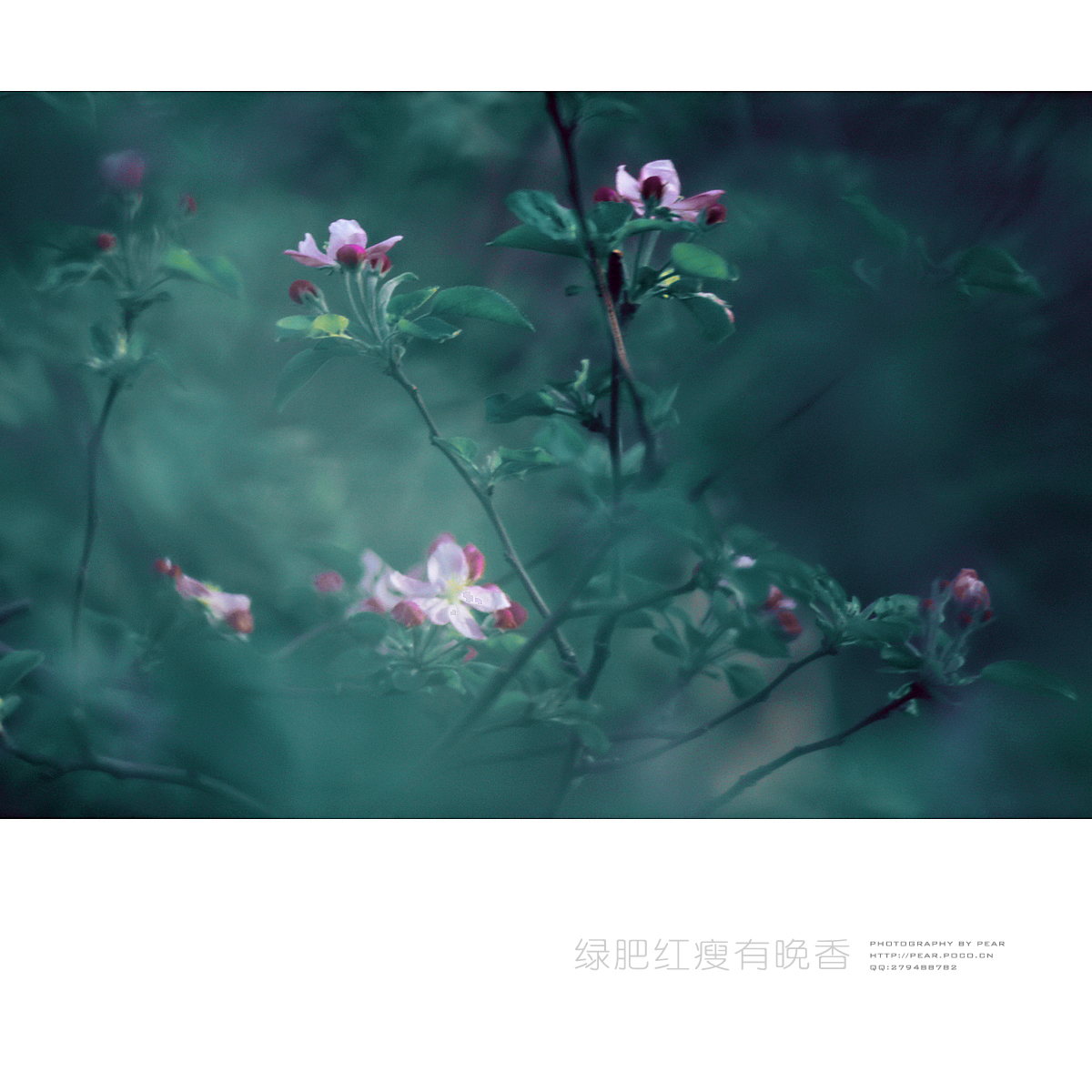 苹果花在我们这里应是春天开得最晚的花了,当绿荫渐浓,她却绽放其间,幽幽的散发着暗香。