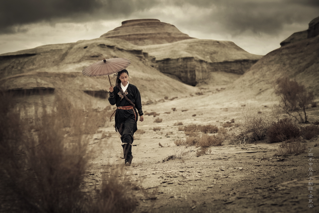 摄影后期:爱良安 出镜化妆:小 安 服装提供:瞳莞汉服 拍自于我带队的新疆人像教学团。鉴于16年新疆团之行所遇到的严格检查,今年弓箭直接从x宝邮寄到了新疆朋友那。谁知道在魔鬼城拍摄的时候还是被警察没收。沟通了很长时间才在3个警察同志的监督下拍了一个多小时,后面大量的时间只有现场做了一个包袱拍成了行走大漠的场面。传统弓箭这个题材只有以后来弥补了。