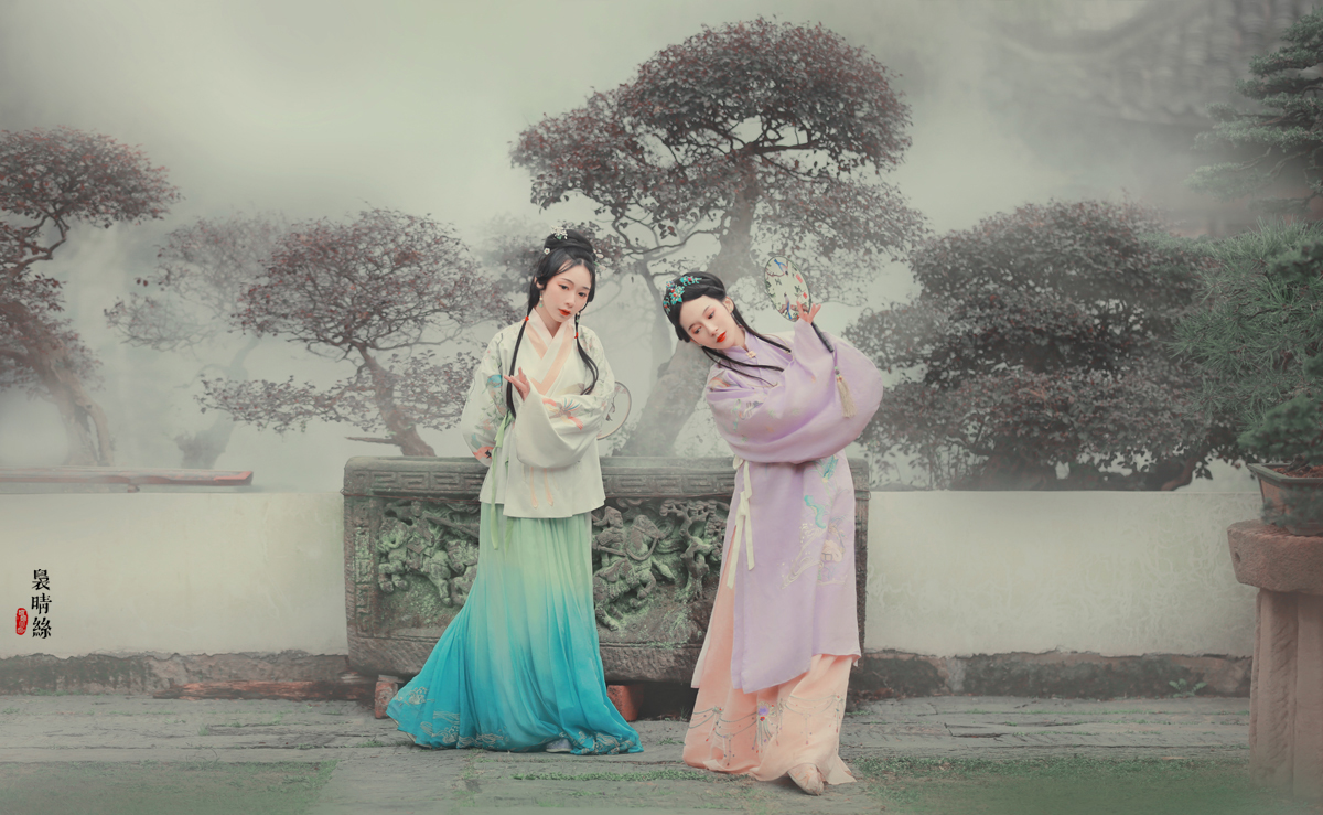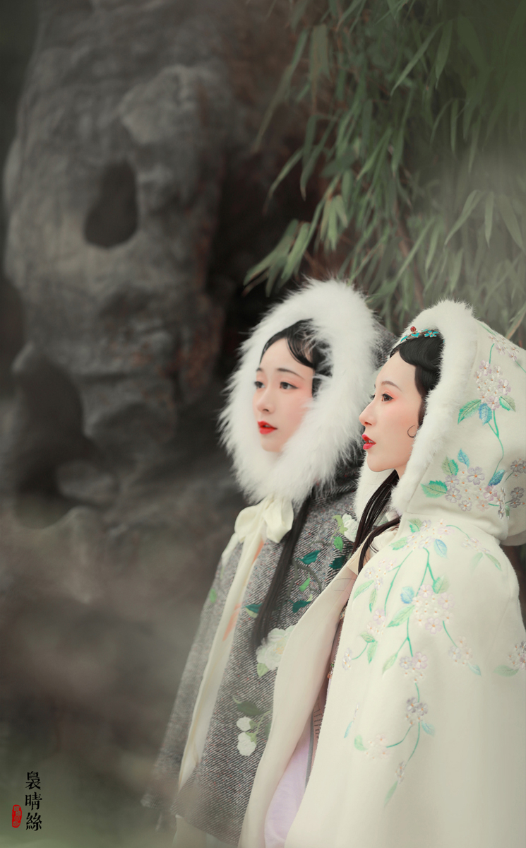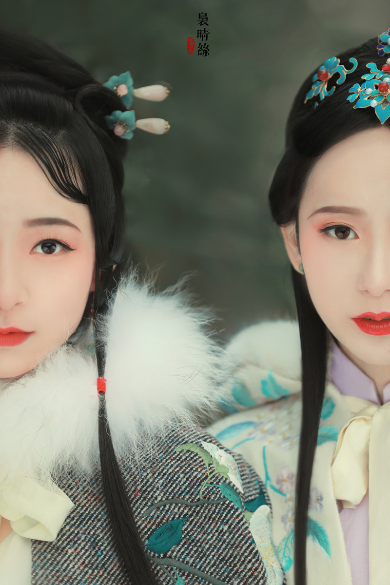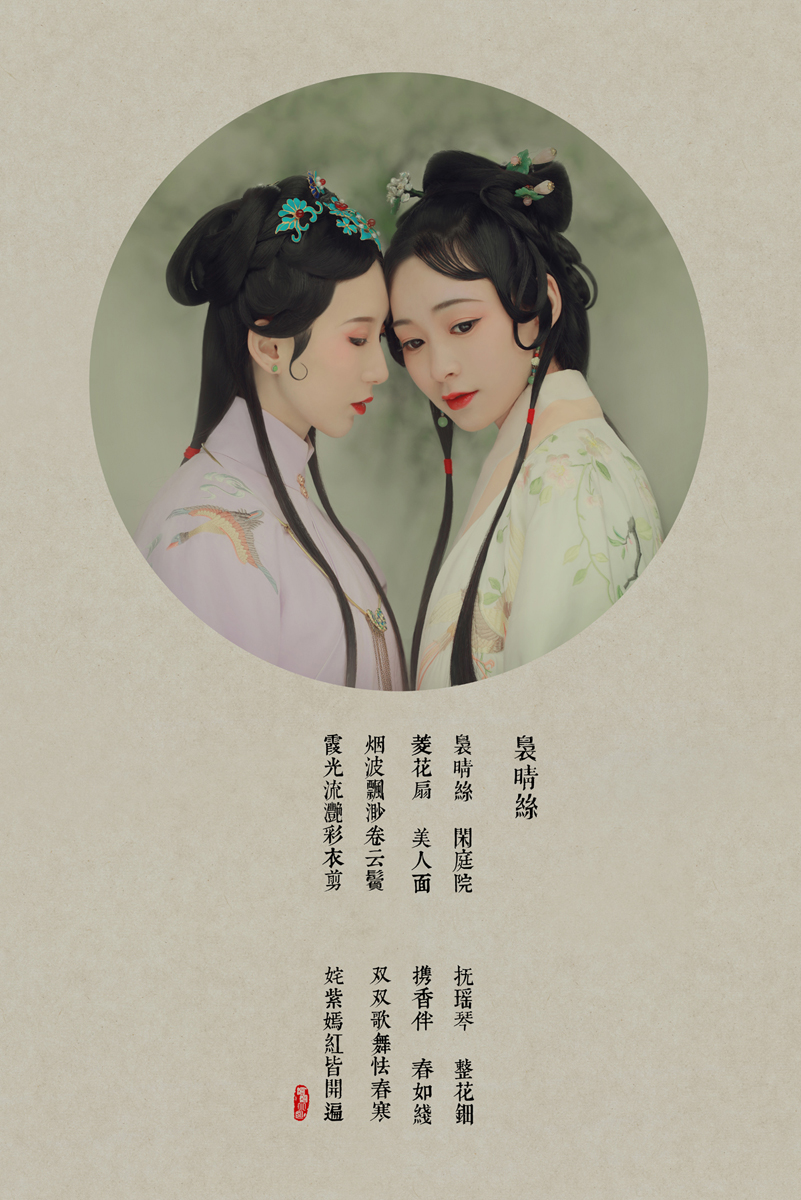 袅晴丝,闲庭院。菱花扇,美人面。烟波飘渺卷云鬓,霞光流滟彩衣剪。 抚瑶琴,整花钿。携香伴,春如线。双双歌舞怯春寒。姹紫嫣红皆开遍。 摄影/后期:@摄影师蝈蝈小姐 ,入镜:@司音儿 @欧琪琦是个美男子 , 服装道具规划/诗:@蔓殊菲儿本尊 妆发:紫衣@桃夭momoko 白衣@ACE-杏子