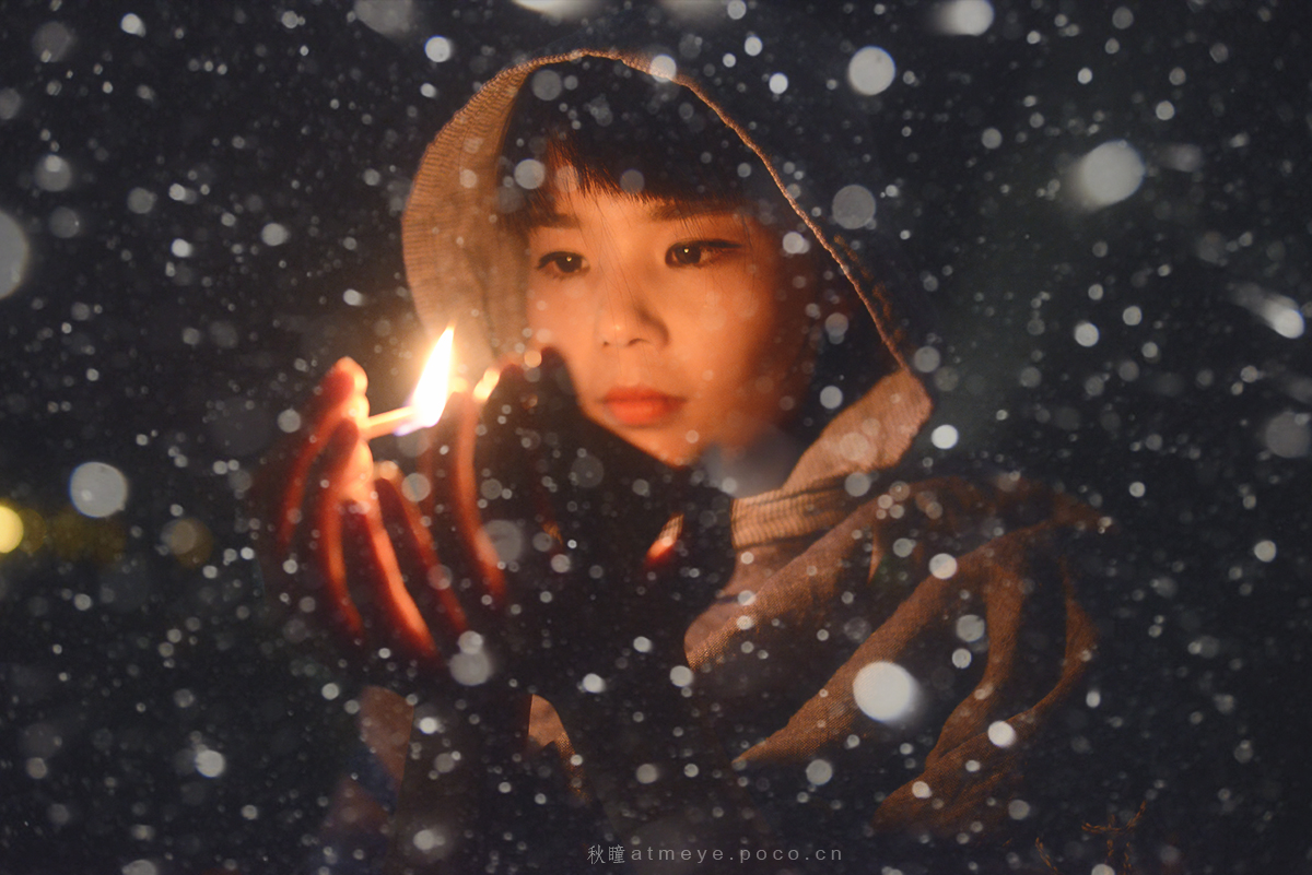 汉斯·克里斯蒂安·安徒生是一个拥有着非凡想象力和同情心的丹麦作家,他创作的童话故事不仅对儿童而且对成年人同样具有重要意义。比如他讲述的这个在圣诞夜卖火柴的小女孩的悲惨故事,因为没有卖掉一根火柴,小女孩一天没有吃东西。她又冷又饿,当擦亮第一根火柴,她看见了喷香的烤鹅;当擦亮第二根火柴,她看见了美丽的圣诞树;当擦亮了第三根火柴,她看见了久违的外婆,她想让外婆留在自己身边,所以擦亮了一整把火柴。然而当火柴熄灭的时候,这所有的一切都不见了,小女孩就是这样在圣诞节的风雪之夜中悲惨地死去,没有人知道她在生前最后一刻看到的美好情景。小女孩什么都没有,只能一次次擦燃火柴,一次次地在幻像之中寻觅。除此之外,陪伴她的只有寒冷、饥饿和痛苦。这次主题活动,麻豆非常敬业,天寒地冻的在外演绎主角。因为前期从服饰、道具、灯光上做了一些准备工作,所以活动从技术分解到实战创作及逐一点评,影友们收获快乐的同时,相信也收获到了独属自己的夜景用光心得。